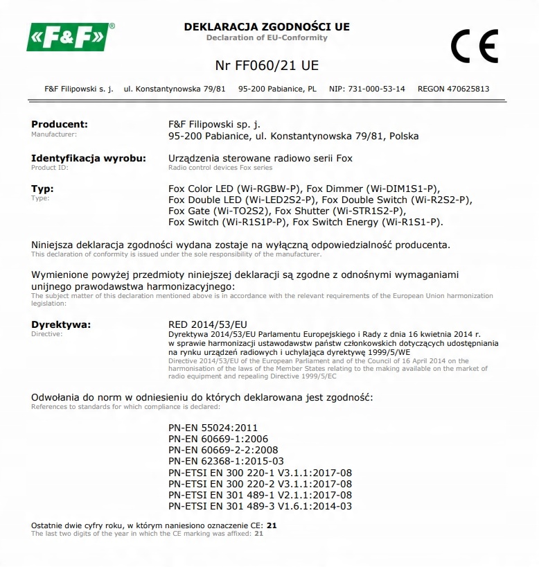 F&F FOX WIFI КОНТРОЛЕР GATES GATE 2 Wi-TO2S2