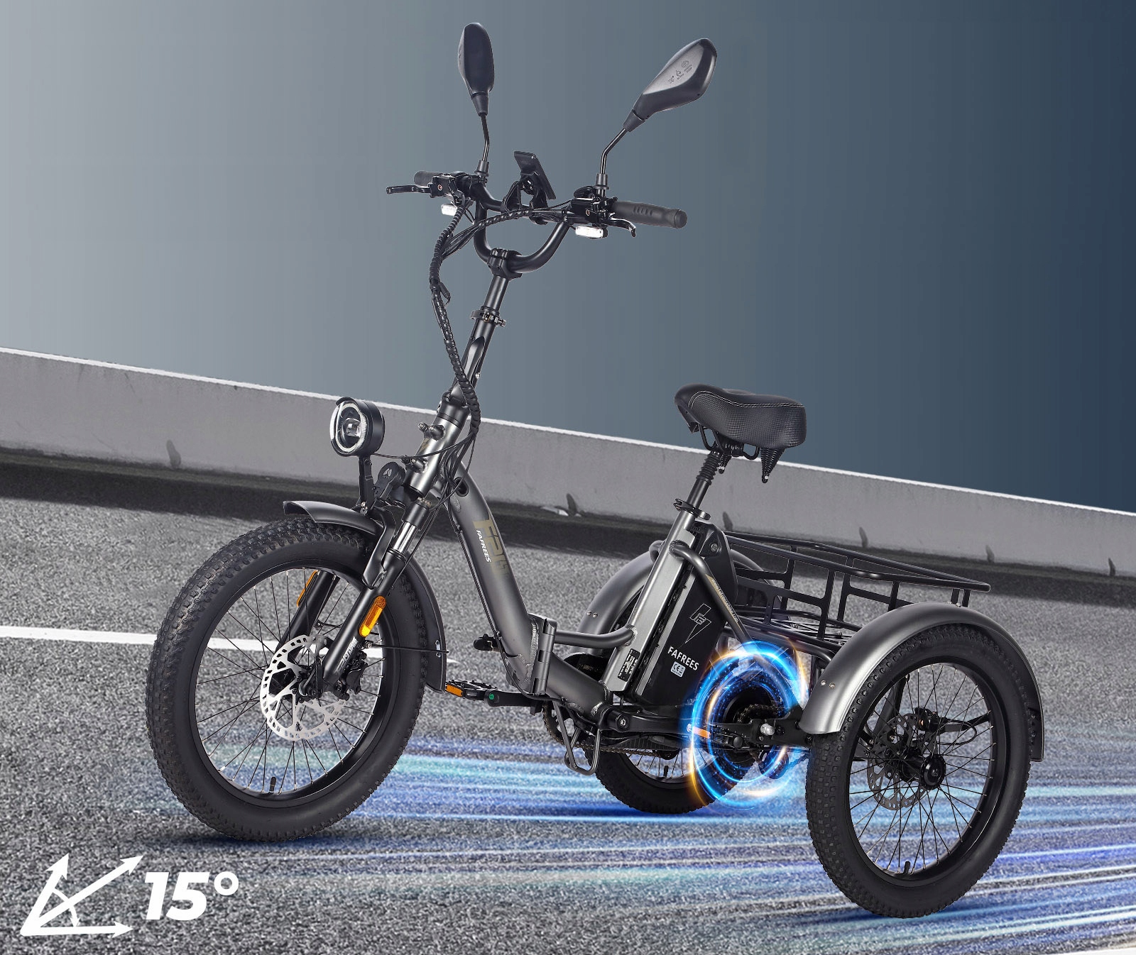Мужской/женский электрический трехколесный велосипед FAFREES F20 Mate, бесщеточный двигатель 500 Вт, аккумулятор 48 В/21 Ач, шины 20*3,0 дюйма, максимальная скорость 30 км/ч, максимальный запас хода 120 км, дисковые тормоза