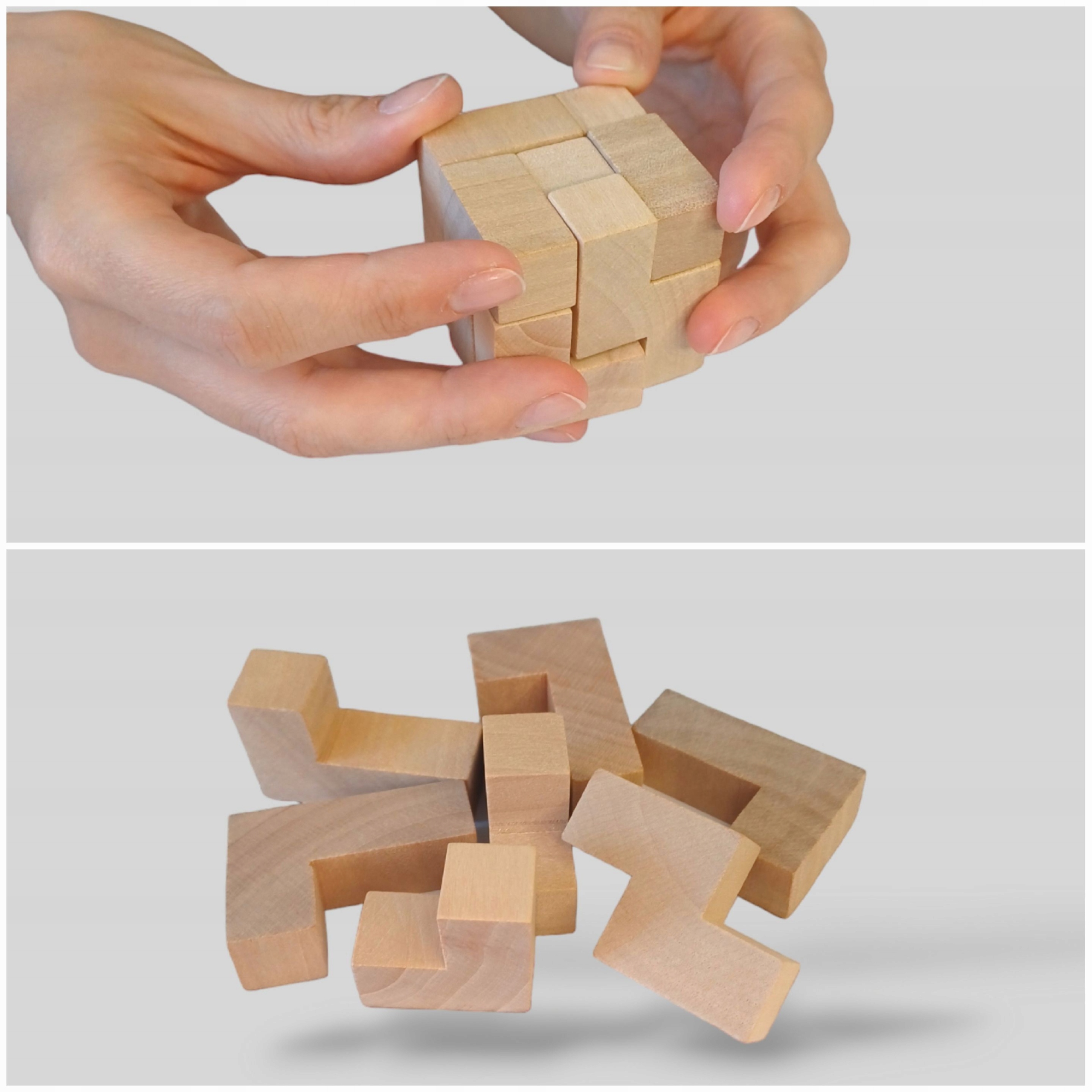 Этот пазл предполагает сборку куба из семи разных элементов.