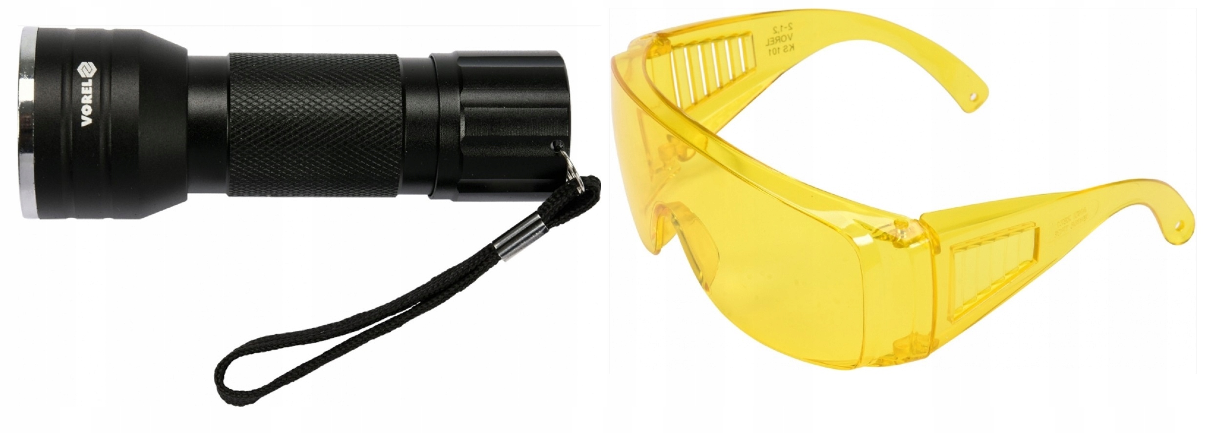 УФ-фонарик предназначен для обнаружения утечек в системах кондиционирования автомобилей с использованием контрастного вещества. В комплект входят очки, защищающие от УФ-излучения, соответствующие требованиям Европейской директивы по средствам индивидуальной защиты.