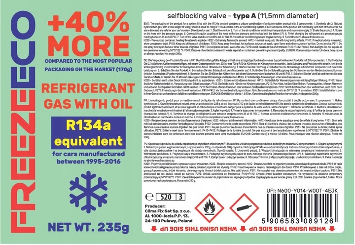 Freezeco R134a. Подготовка к мощности 235 г является эффективным и безопасным хладагентом, который обеспечивает оптимальную эксплуатацию системы кондиционирования воздуха в вашем транспортном средстве. и смазочное масло системы компрессора выполняет 2 ключевых функций с использованием: