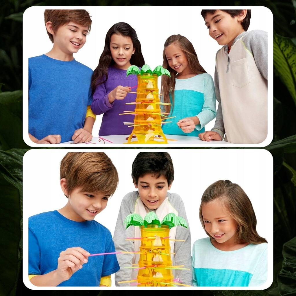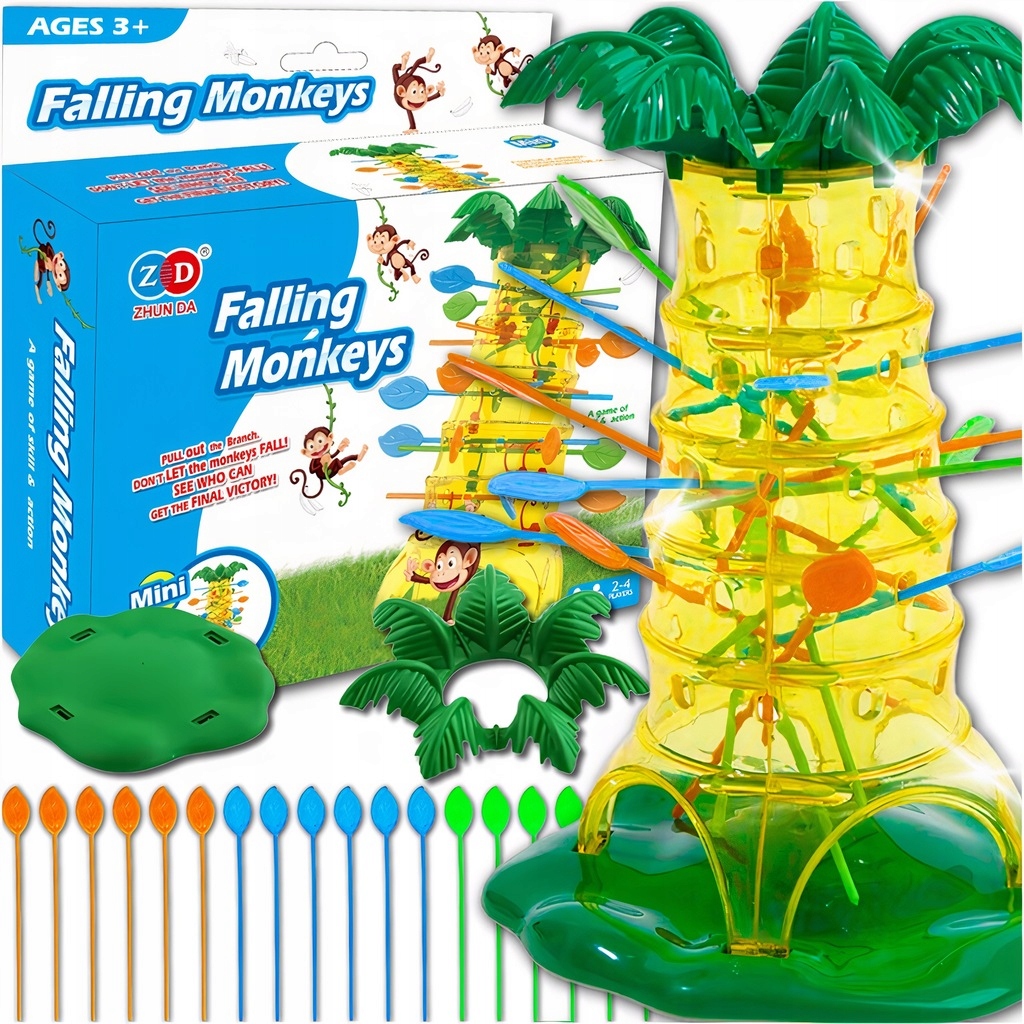 "Falling Monkeys" — классическая игра, которая вызывает много смеха и волнения. Он учит точности, рефлексам и планированию движений, гарантируя незабываемые моменты с семьей или друзьями.