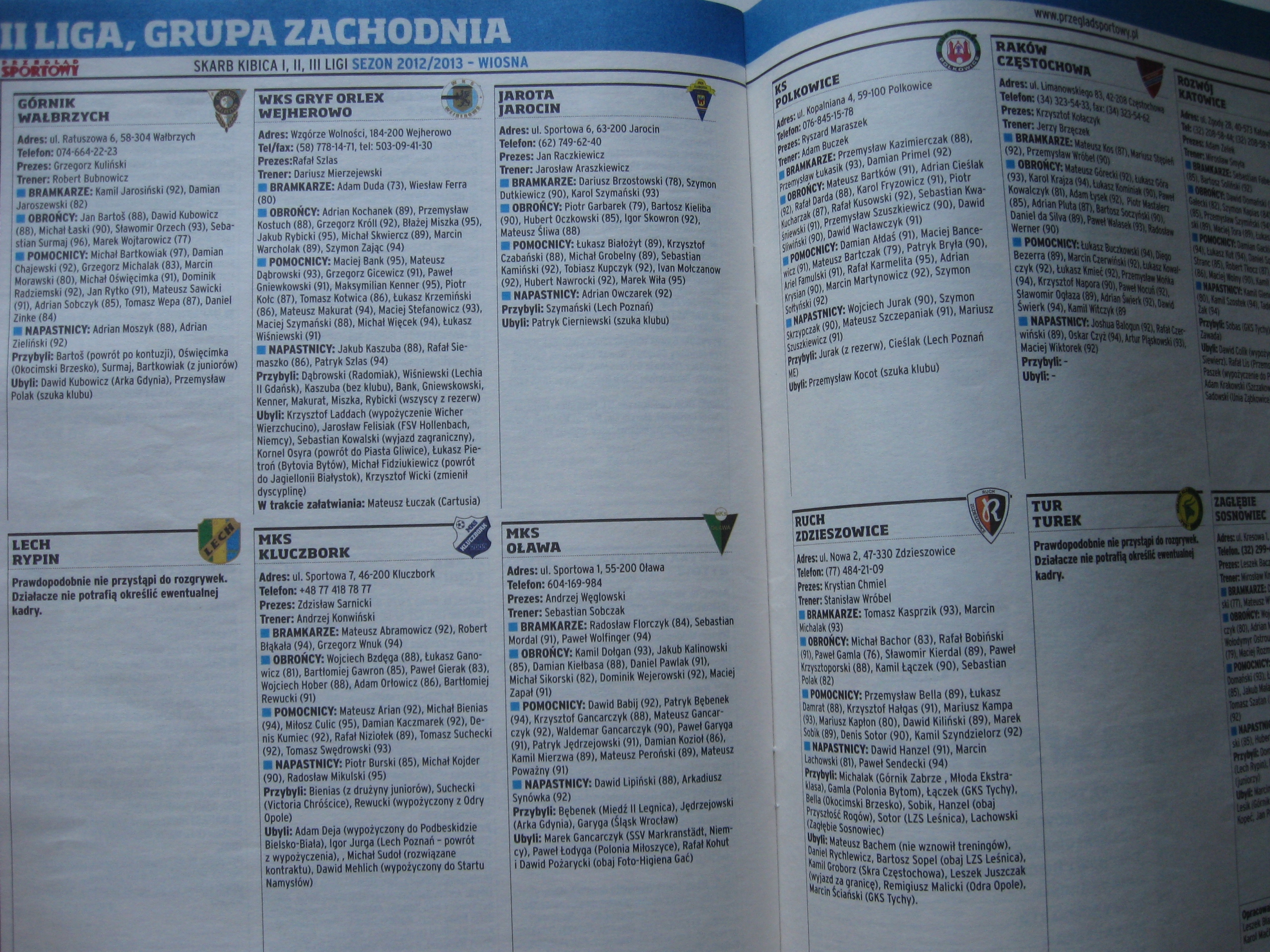 Фан -сокровище Przegląd Sportowy 1, 2, 3, 4th Liga осень 2012/2013