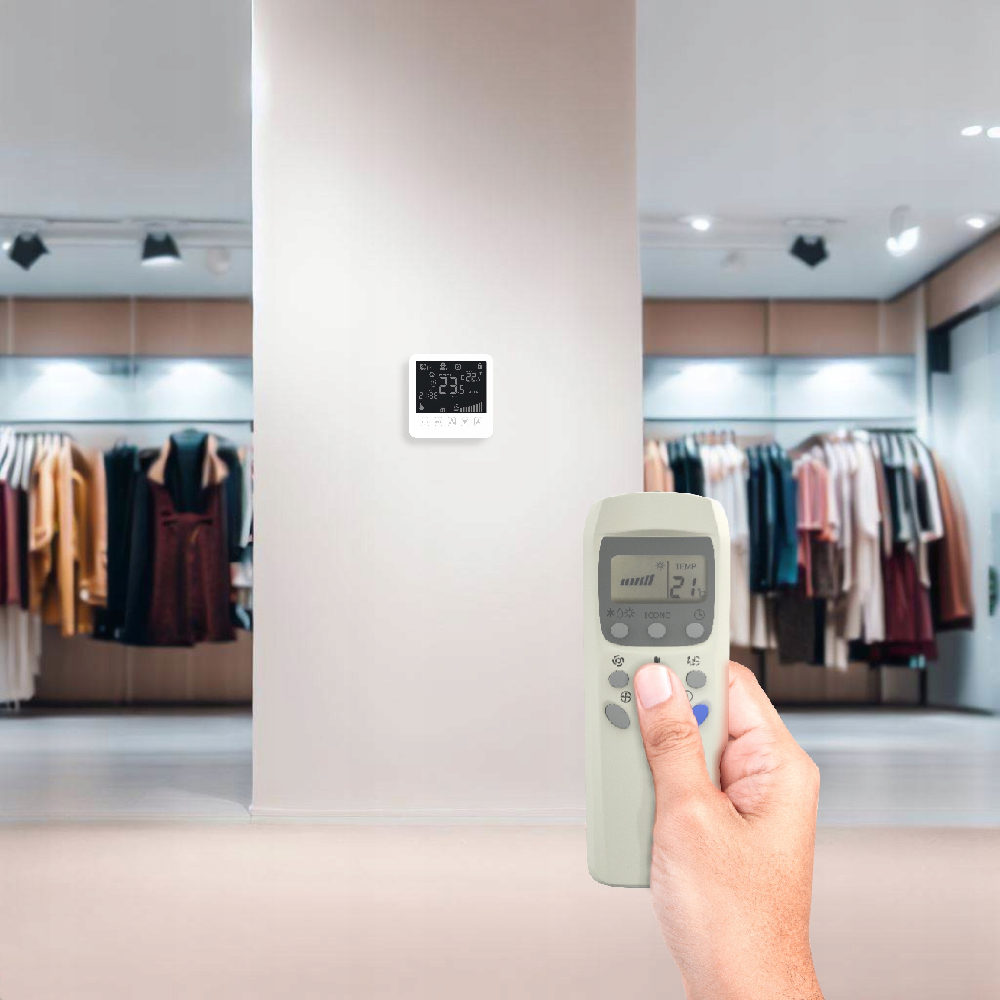 Термостат работает путем интеллектуального открытия или закрытия клапана в зависимости от заданной температуры. Если температура в помещении превышает заданное значение, термостат подает сигнал на открытие клапана. В результате нагревательная или охлаждающая среда может свободно проходить через фанкойл, повышая или понижая температуру по мере необходимости.
