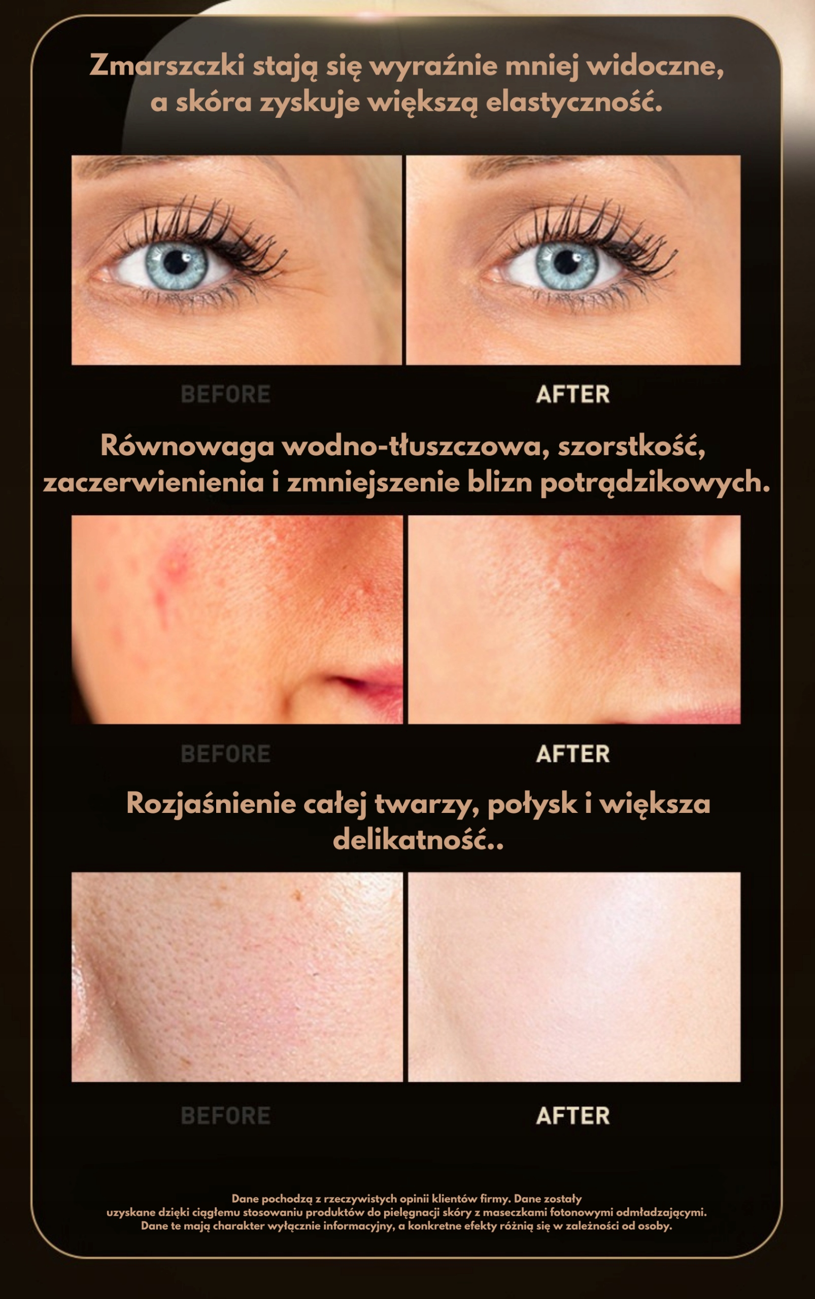 ✨ Осветление и выравнивание цвета — светодиодный свет помогает уменьшить обесцвечивание, придавая коже сияющий и здоровый вид. внешний вид.