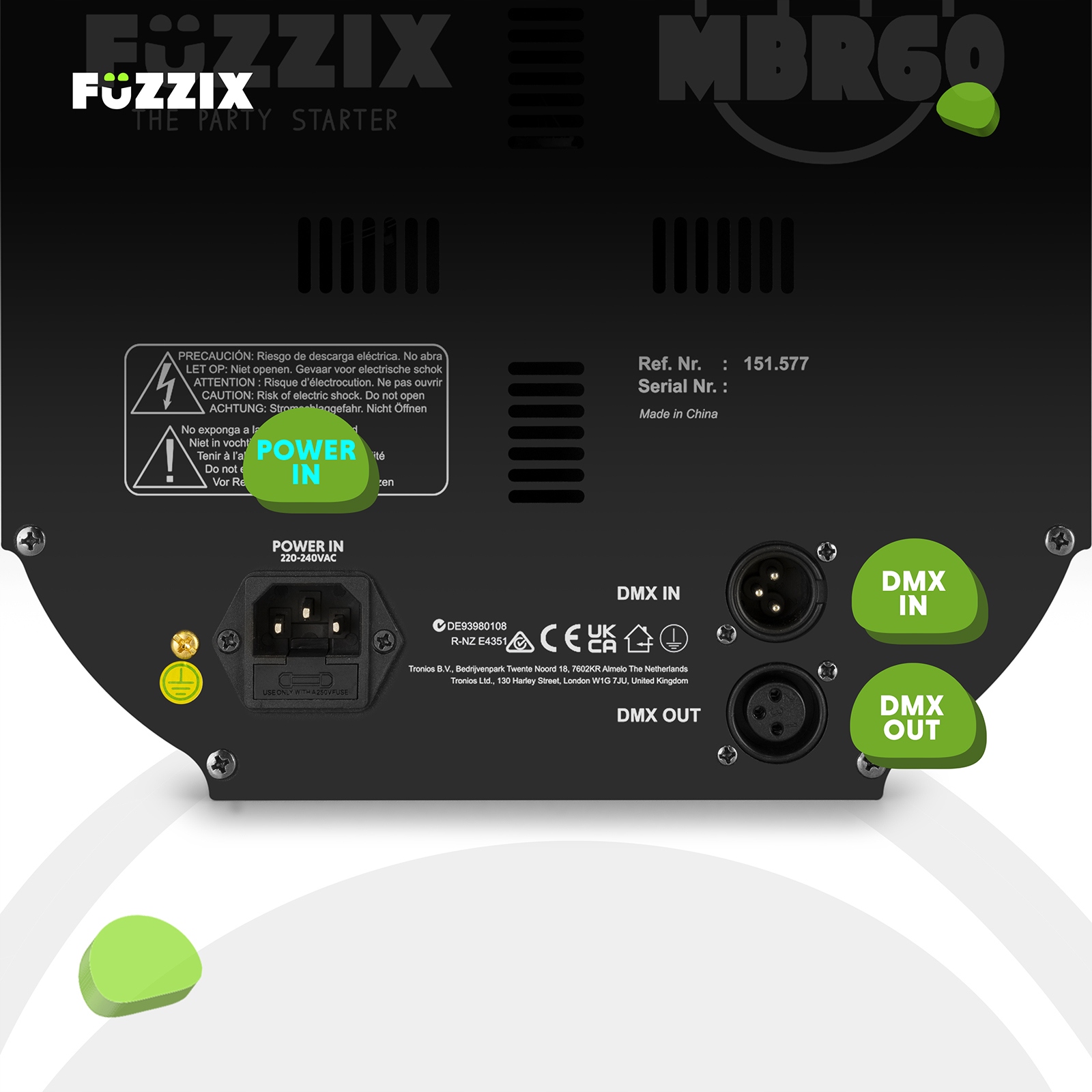 Благодаря поддержке DMX, вы имеете полный контроль над устройством. Используя 4 канала DMX, вы можете точно регулировать направление и скорость вращения зеркальных панелей, что делает Fuzzix MBR60 идеально вписаться в обширные системы освещения. У вас нет доступа к DMX? Без проблем! Устройство также предлагает автоматический режим и управление звуком, позволяя динамическим эффектам освещения без необходимости программирования.