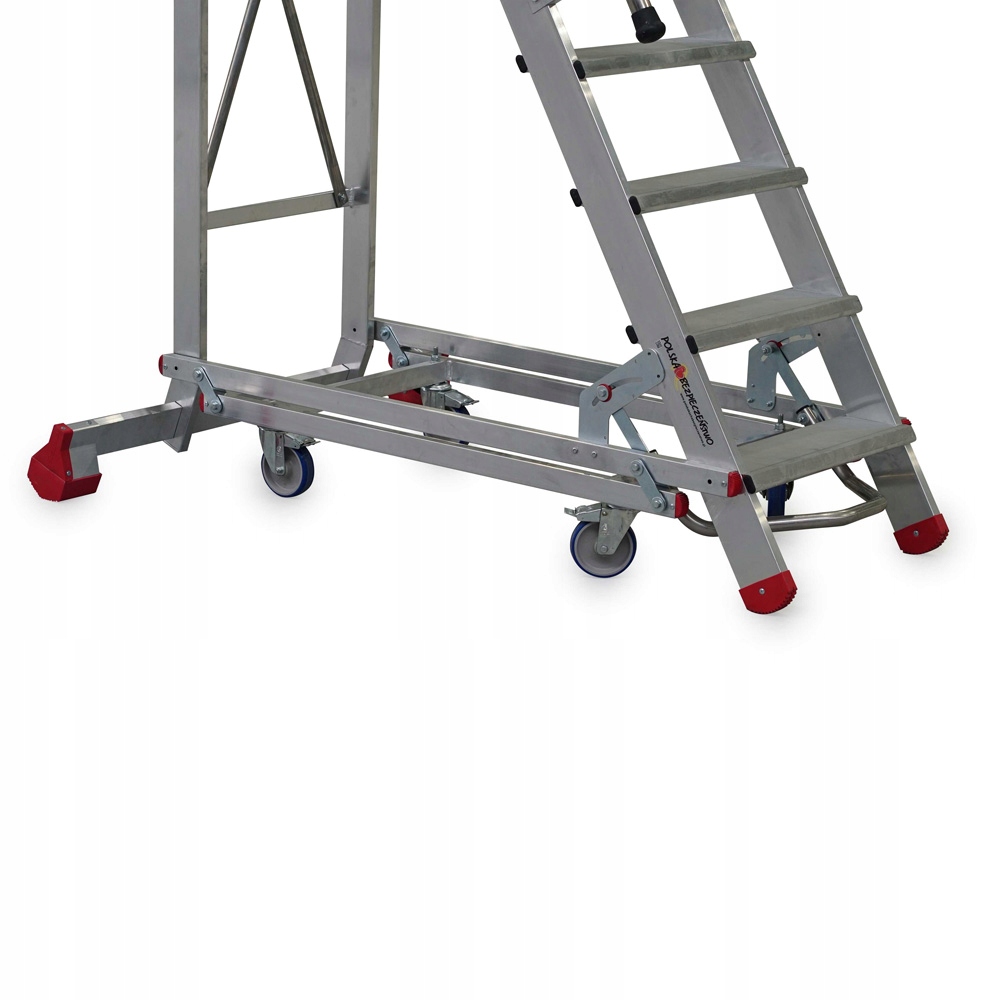 Складная, легкая и мобильная конструкция гарантирует удобную транспортировку. Вход под углом 60 градусов и ступеньки глубиной 15 см повышают безопасность и комфорт работы. Прямой угол заднего профиля позволяет близко расположить оборудование, напр. возле полок, что значительно облегчает работу.