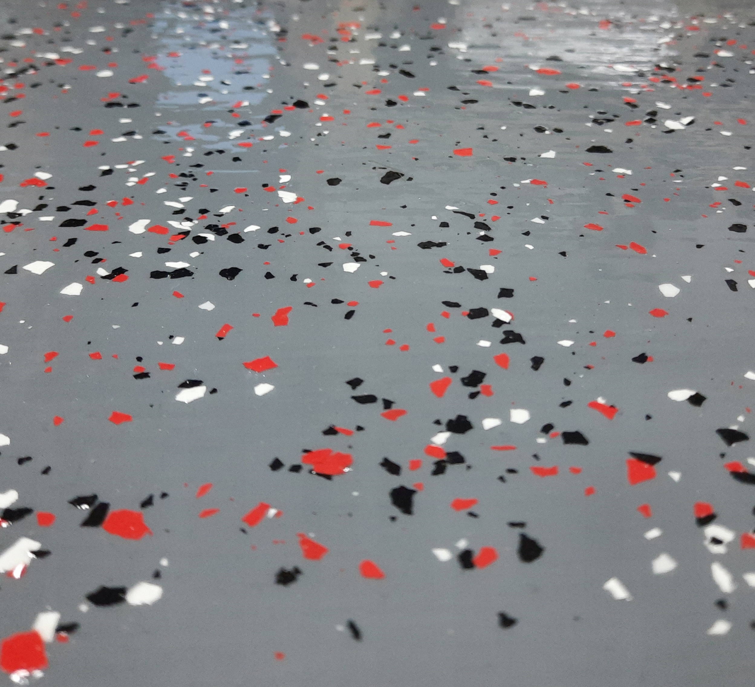 Декоративные чешуйки улучшить внешний вид пола и замаскировать дефекты поверхности.