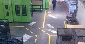 На промышленных складах и залах со средним и высоким воздействием истирания, где мы намерены создавать прочные линии, мы предлагаем использовать более сильные эпоксидные смолы.