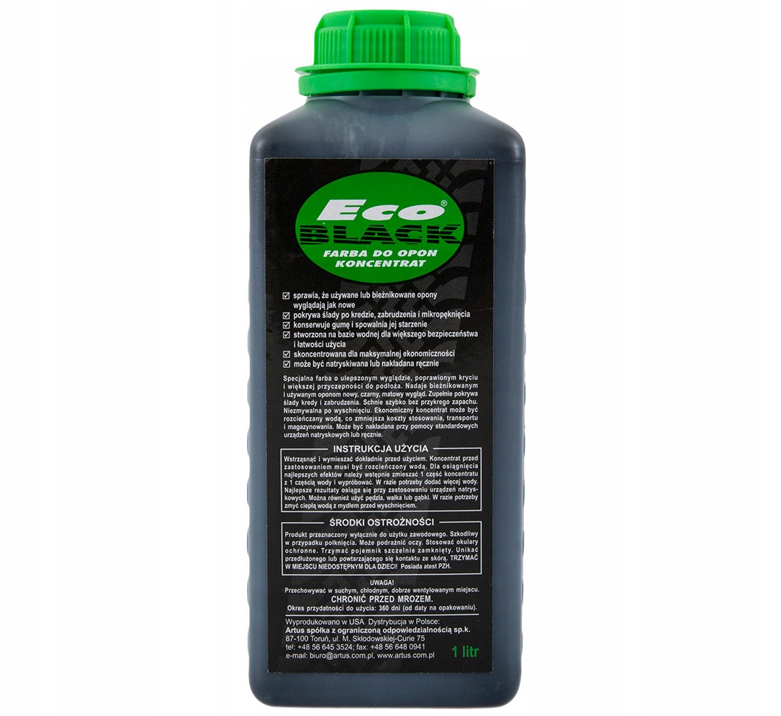 Вы обеспокоены тем, стоит ли использовать средство для чернения шин? В отличие от дешевых продуктов, которые вы найдете на полках супермаркетов, краска для шин ECO Black обеспечивает длительный эффект. После нанесения на шину концентрат оставляет черный матовый защитный слой исключительной гладкости – что немаловажно, черный цвет устойчив к неблагоприятным погодным условиям и стирке. Сам продукт также позволяет сохранить резину, замедляя ее старение.