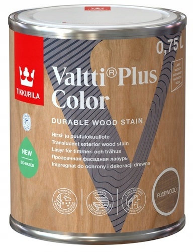 <р> Он проникает глубоко, подчеркивая структуру древесины и обеспечивая естественный матовый оттенок. <р> Сильная защита от УФ-излучения и влаги надолго защищает <р> против изменения погодных условий. <р> Доступен в широкой цветовой гамме в системе окрашивания Tikkurila и в 6 готовых цветах. <р> В Tikkurila Valtti Plus Color заменено 73% общего содержания органического углерода <р> ингредиенты растительного происхождения (маркированы в соответствии с ASTM D6866-18), что составляет 17% <р> относительно общего состава продукта.Приложение: