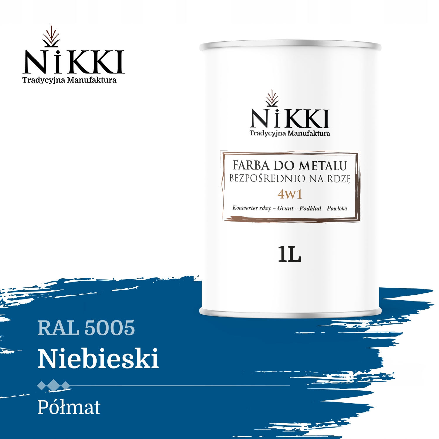 КРАСКА ДЛЯ МЕТАЛЛА ПРЯМАЯ ОЦИНКОВАННАЯ 4в1 ЦВЕТ СИНЯЯ RAL 5005 ПОЛУМАТОВАЯ 1л