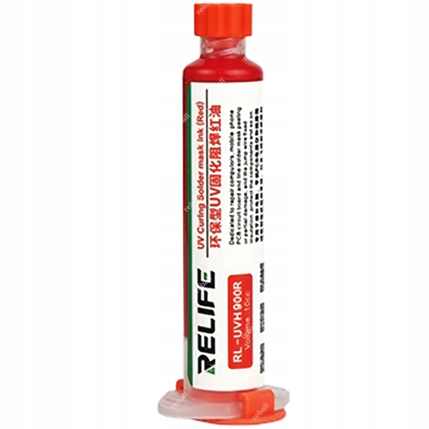 Relife RL-UVH900R — специальная краска/лак для использования в процессе пайки, которая способна затвердевать под воздействием ультрафиолетового излучения. Эта краска имеет красный цвет, что позволяет легко отличить участки, покрытые краской, от еще не покрытых.