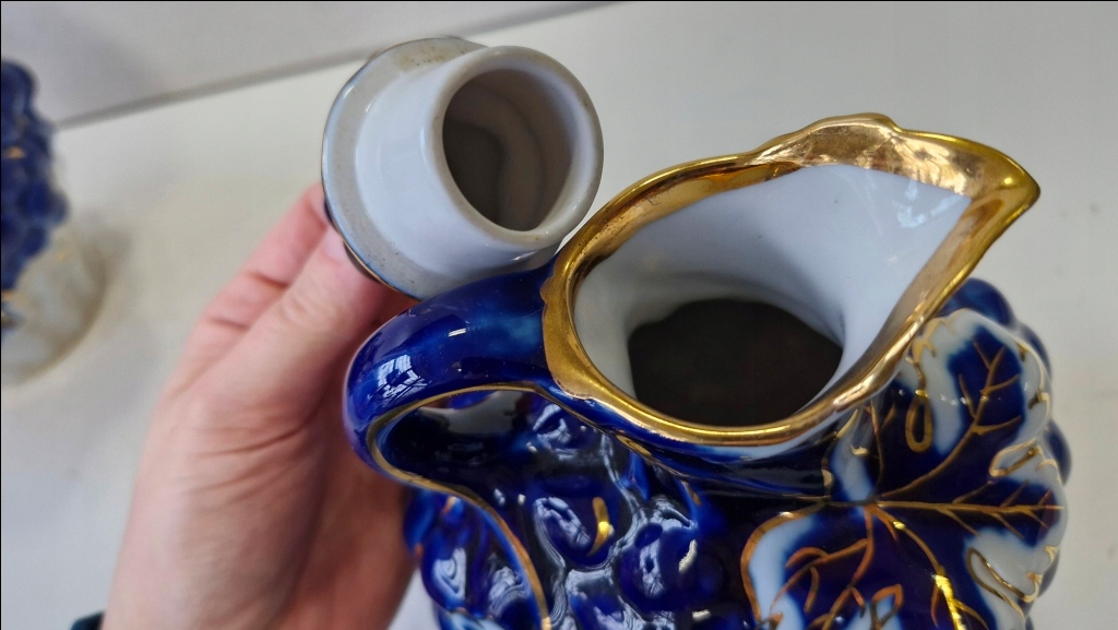 ФАРФОРОВЫЙ ГРАФИН С МОТИВОМ ЛОМОНОСОВСКИЙ ВИНОГРАД В ХОРОШЕМ СОСТОЯНИИ GWR