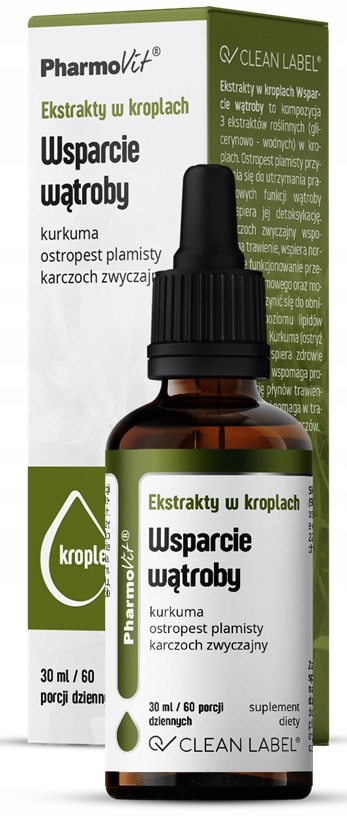Экстракты в каплях Поддержка печени представляет собой композицию из 3-х растительных экстрактов (глицерина и воды) в каплях. Расторопша способствует поддержанию правильных функций печени и способствует ее детоксикации. Артишок поддерживает пищеварение, поддерживает нормальное функционирование пищеварительного тракта и может способствовать снижению уровня липидов в крови. Куркума (куркума) поддерживает здоровье печени, поддерживает выработку пищеварительной жидкости и помогает в переваривании жиров.