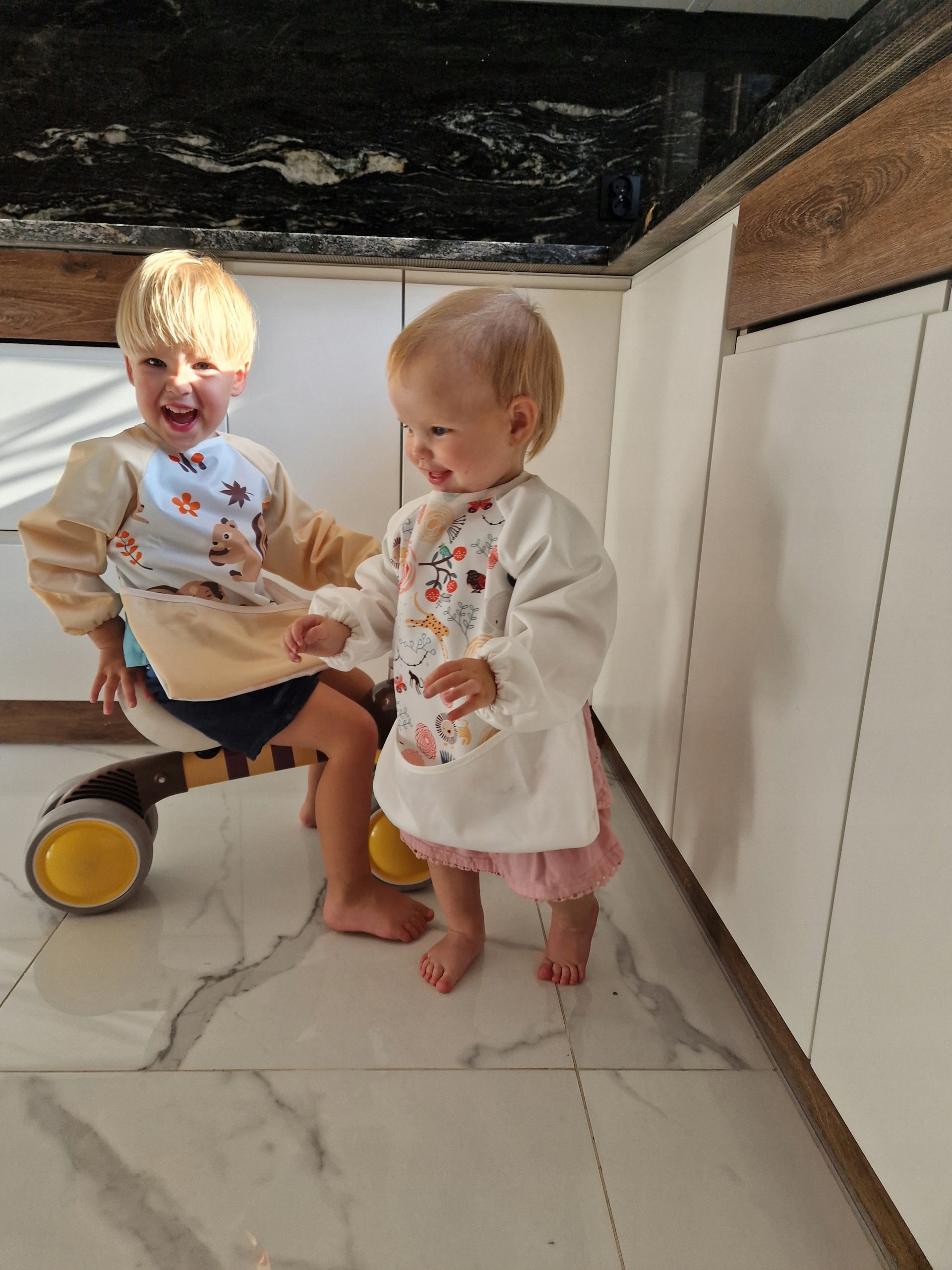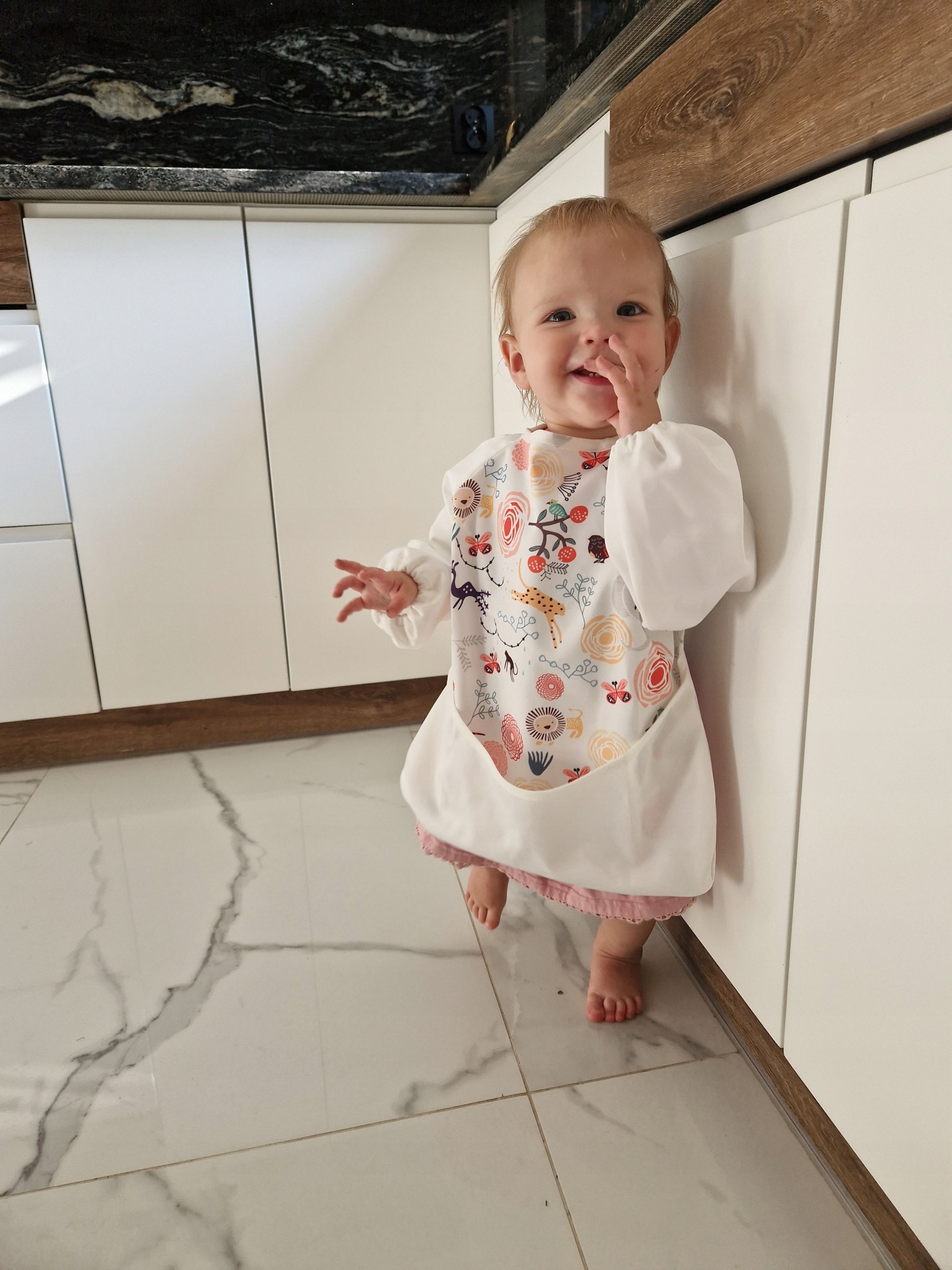 Элегантный нагрудник с длинными рукавами, который защитит одежду вашего ребенка от загрязнения во время еды и игр.