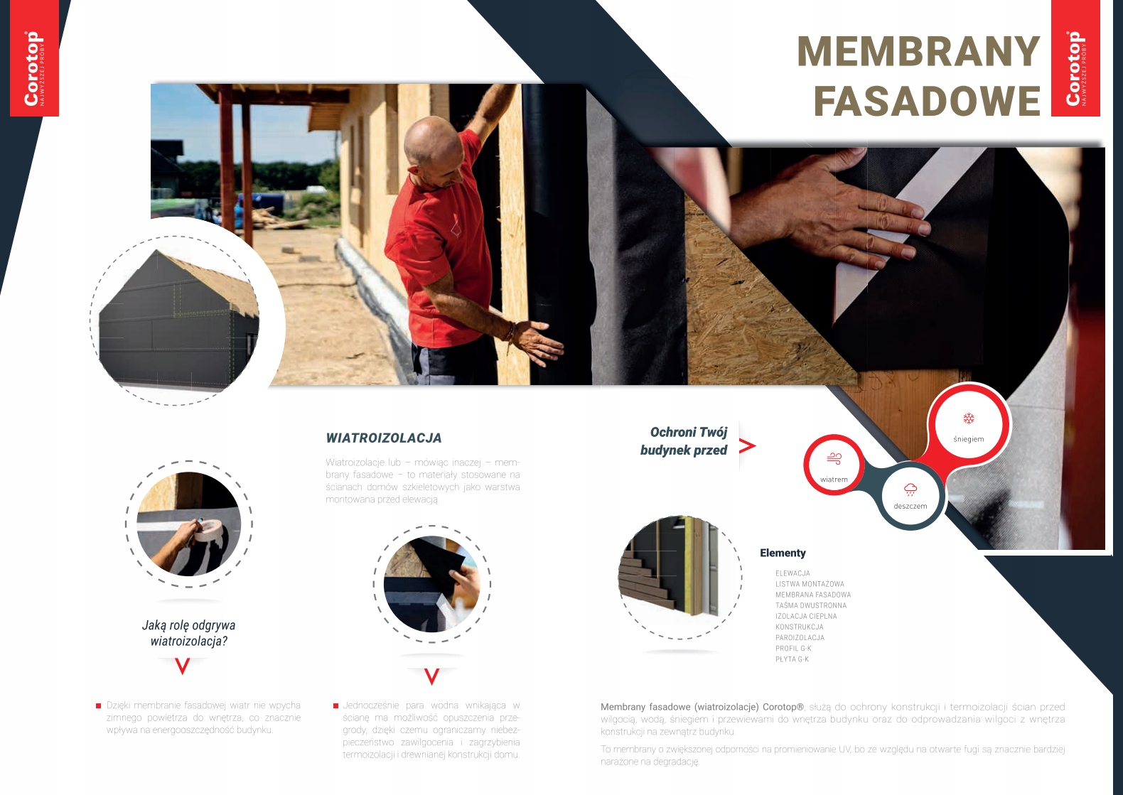 corotop Open -это двухкачественная двухслойная фасадная мембрана, изготовленная из полиэфирной непротяженной полиэстеры без слоя. Благодаря своим свойствам он обеспечивает высокую защиту от влаги снаружи, но также защищает от погодных условий. Мембрана подходит для использования в стенах с вентилируемыми фасадами с открытыми соединениями шириной до 2 см и максимальной долю суставов на площади до 20%.