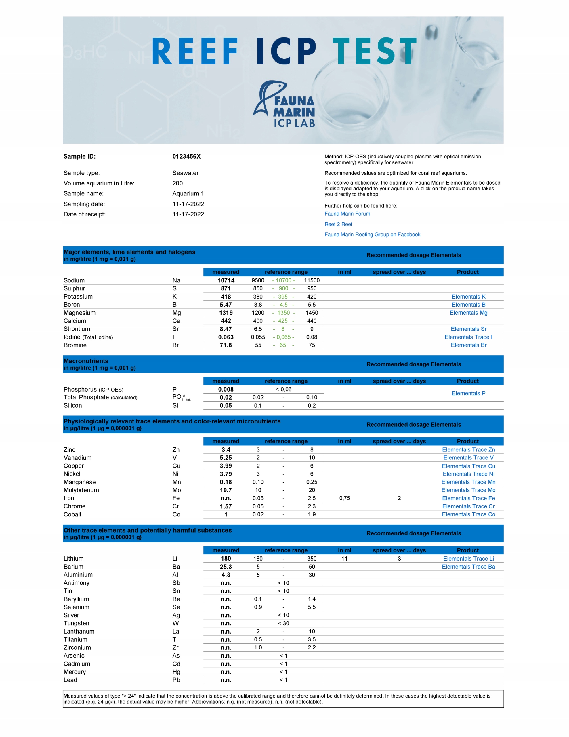 Базовый тест ICP Fauna Marin дает вам быстрый и простой обзор 37 ключевых элементов воды рифового аквариума.