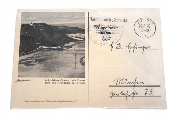 ФЕЛЬДПОСТКАРТ ШТЕТТИН 20.04.1940 ДОРТМУНД СВАСТИКА