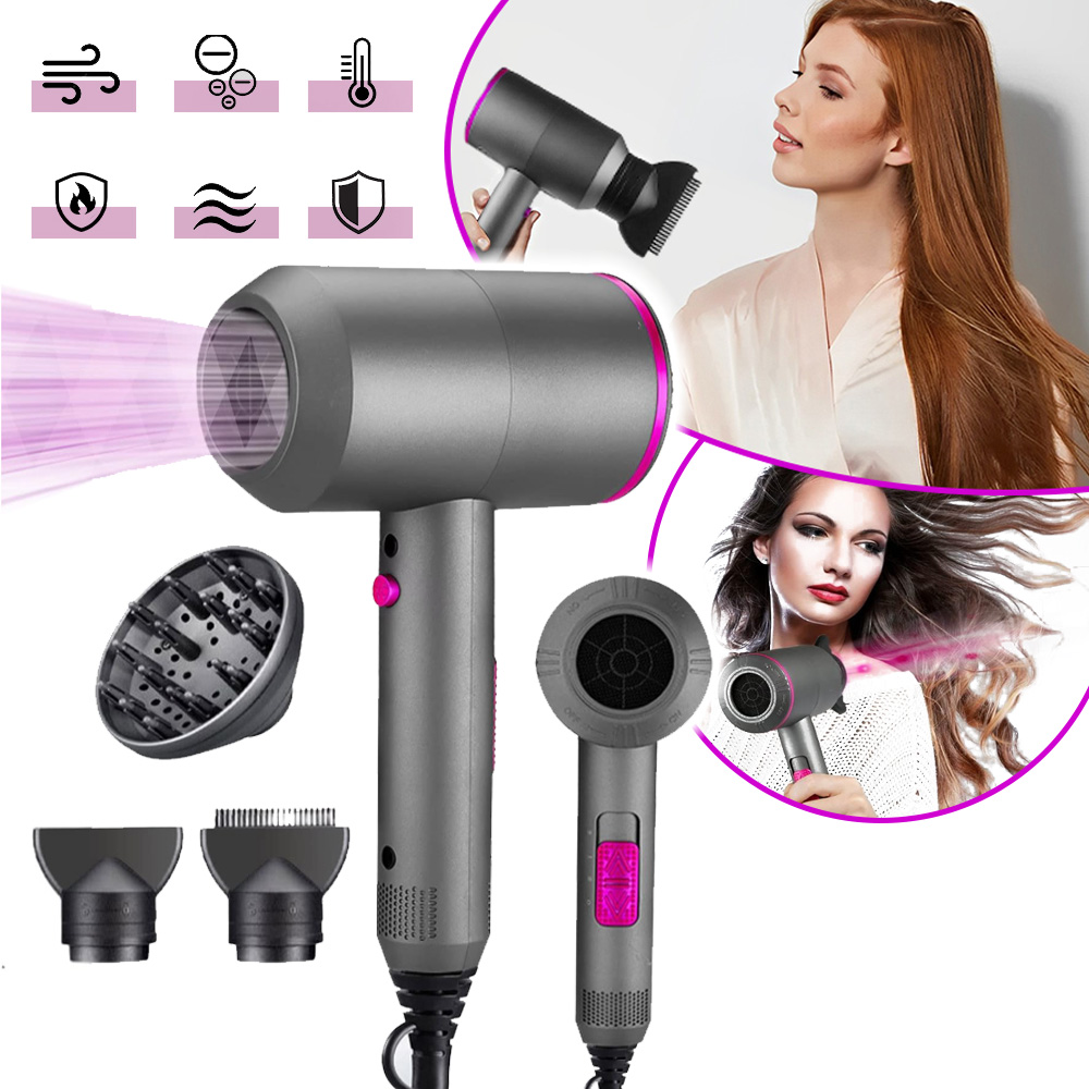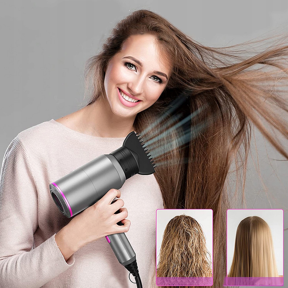 - -Оснащен насадкой для сушки, насадкой для укладки и насадкой для укладки, удобен для сушки прямых волос и укладки вьющихся волос.