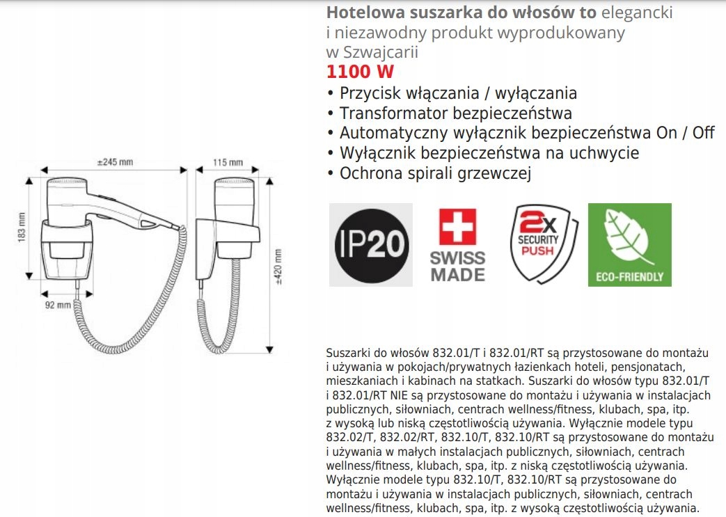 Просматривая «Фен для гостиниц 1100Вт R601 Белый», вы можете быть уверены, что данный товар из каталога «Сушилки для рук» будет доставлен из Польши и проверен на целостность. В цене товара, указанной на сайте, учтена доставка из Польши. Внимание!!! Товары для Евросоюза, согласно законодательству стран Евросоюза, могут отличаться упаковкой или наполнением.