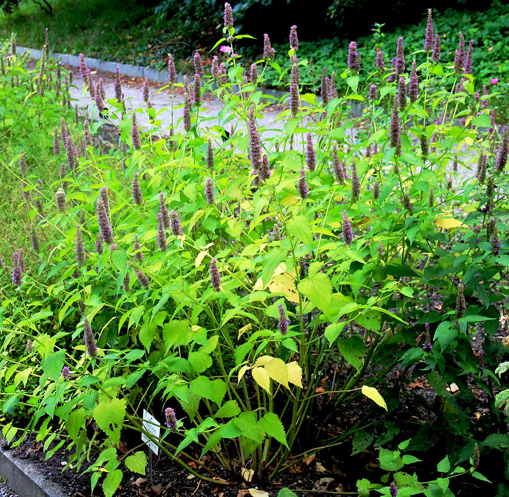 Североамериканский многолетнее время с интенсивным анисом, называемым мексиканской миетой. Очень красиво и желательно в многолетней скидке. Он растет примерно до 1 м, листья явно венозные и зазубренные, соцветия плотные длины до 8 см, сине -виолет, развиваются в конце лета.