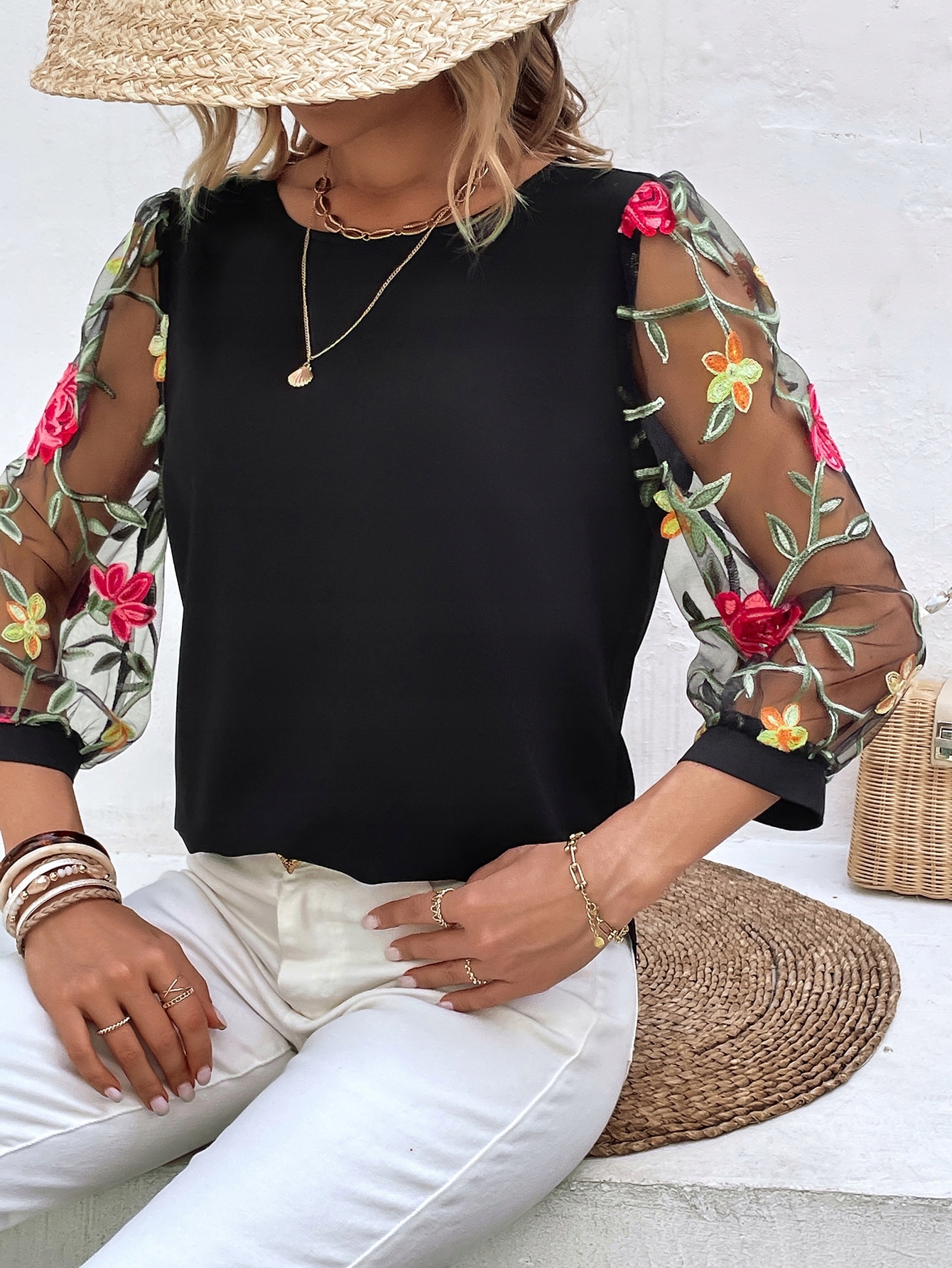 Прозрачный, легкий материал блузки нежно облегает фигуру, создавая утонченный эффект.