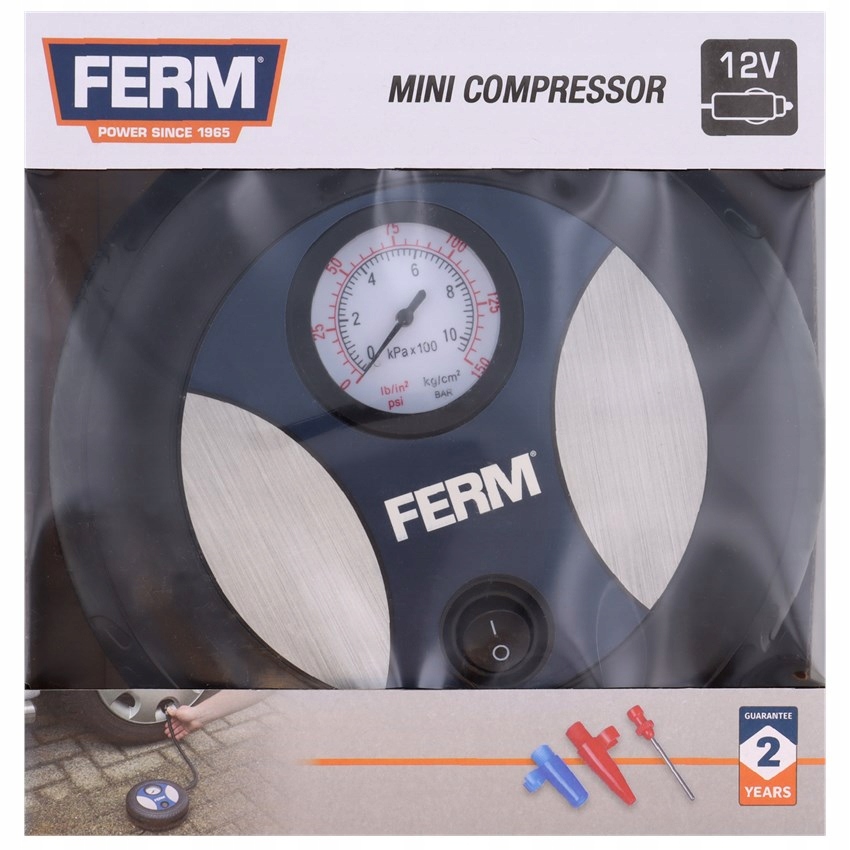 МИНИ-КОМПРЕССОР FERM - МАНОМЕТР НА 10 БАР - КОМПАКТНЫЙ ДЛЯ АВТОМОБИЛЯ