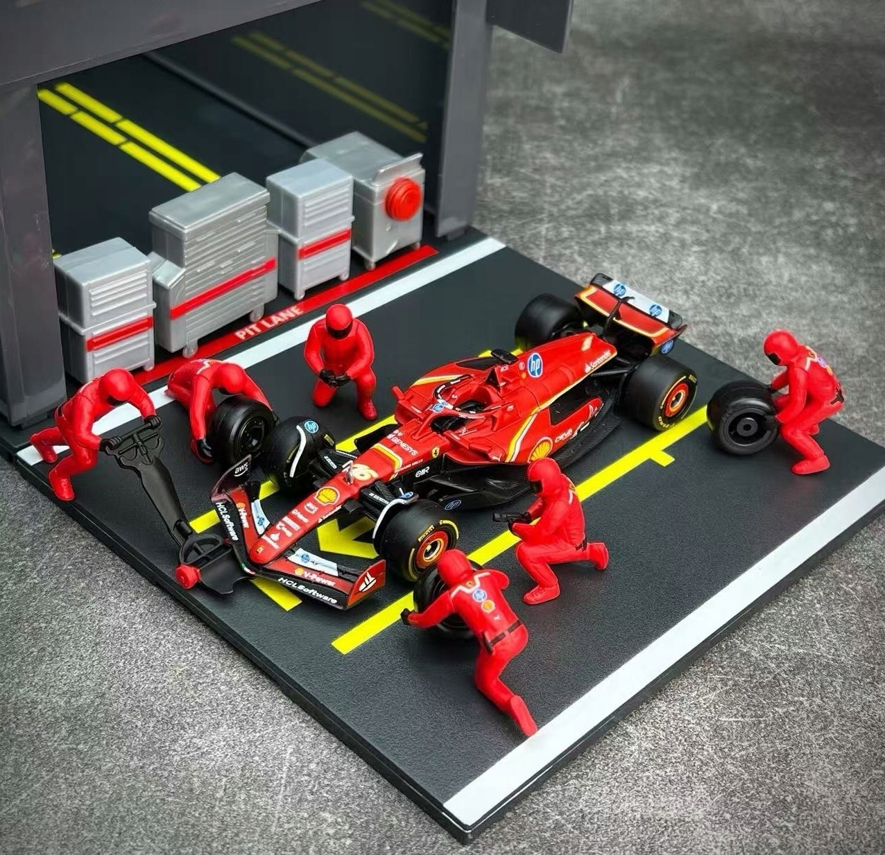 Ferrari F1 НАБОР #16 Ch. Диорама Leclerc Pit Stop 2024 SF-24 BBurago 1:43