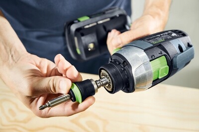 Для быстрого переключения между бурением, воплощением воплощения и привинчиванием: ручка инструмента Centrotec, протестированная с 2001 года, представляет собой ручку для бурения и ручка битов в одном. И все это с половиной меньшего размера и на 80% меньше веса, чем в случае стандартных ручек для бурения: настоящее изобретение фестиожа в известном качестве Festool.