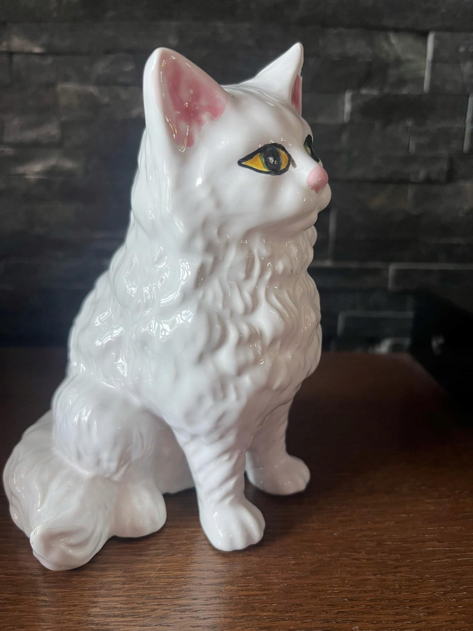 Белая фарфоровая кошка подписала фигурку