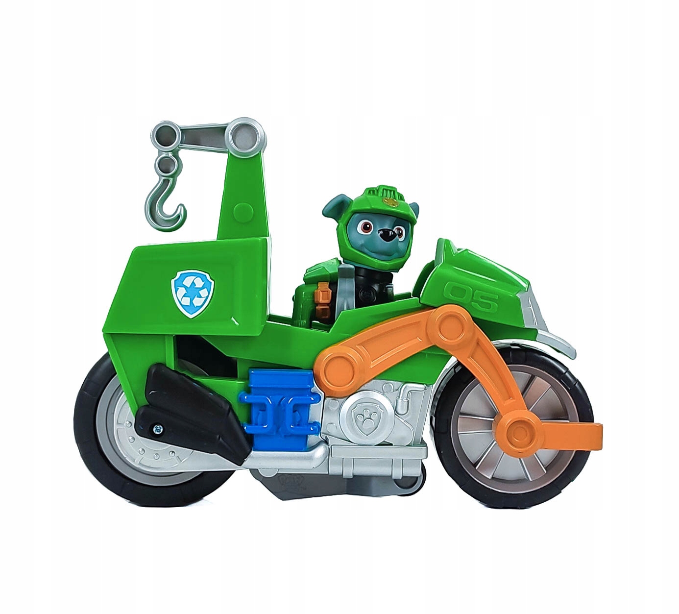 В набор входит Рокки, точно воспроизведенный далматинский герой. У него зелено-черная форма и шлем. Его непременный атрибут – большой мотоцикл с механическим приводом.