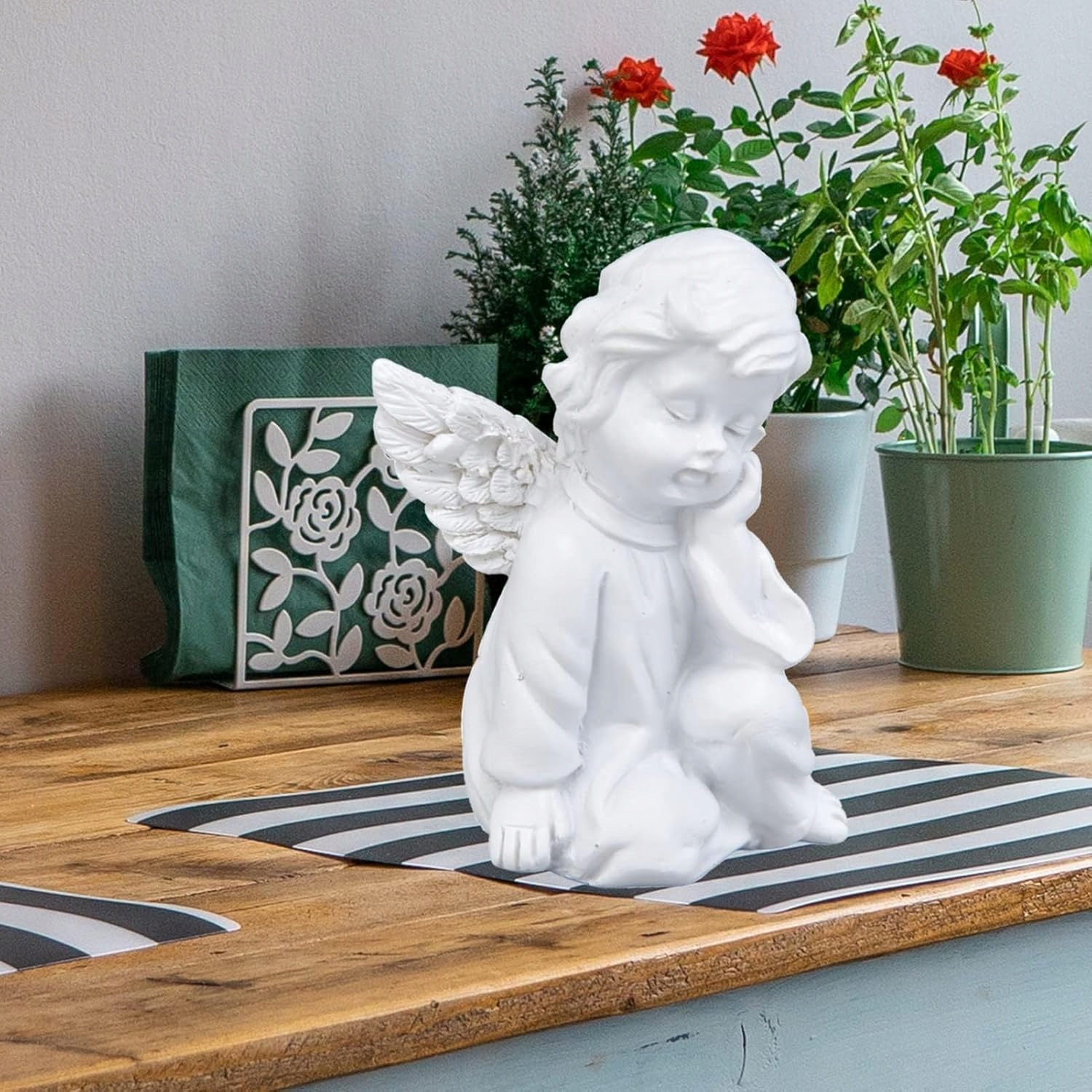 Ангел изготовлен из высококачественной смолы, устойчивой к влаге и повреждениям️. Благодаря этому украшение прекрасно смотрится как дома, так и в саду, не теряя своего очарования даже спустя долгое время 🌼🏡.