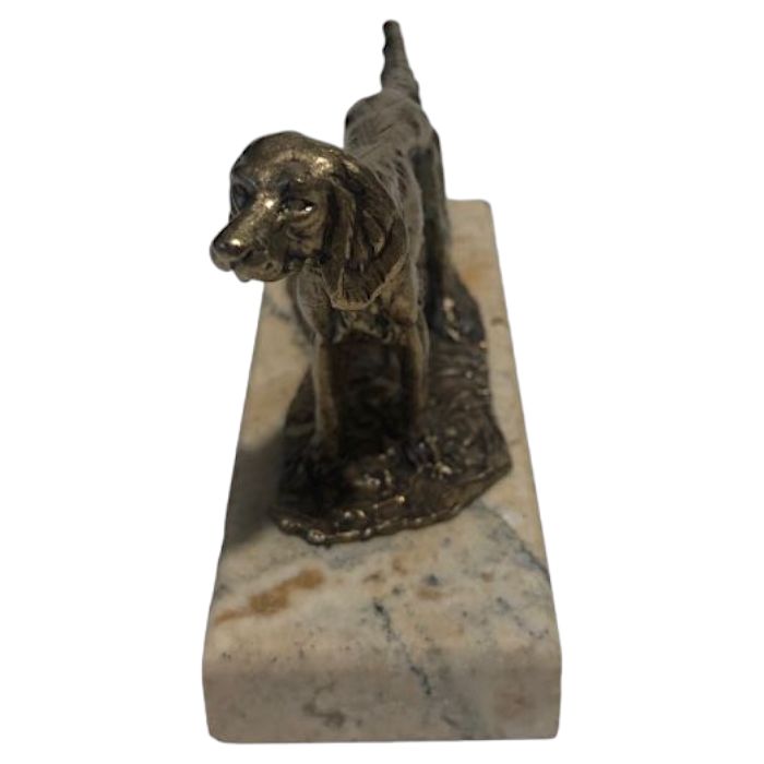 Этот замечательный охотничий сеттер, выполненный из бронзы и помещенный на песочный мрамор, является не только элегантным украшением, но и данью уважения любителям домашних животных. Его изысканное исполнение и тонко прорисованные детали понравятся любому, кто ценит как эстетику, так и охотничьи традиции.
