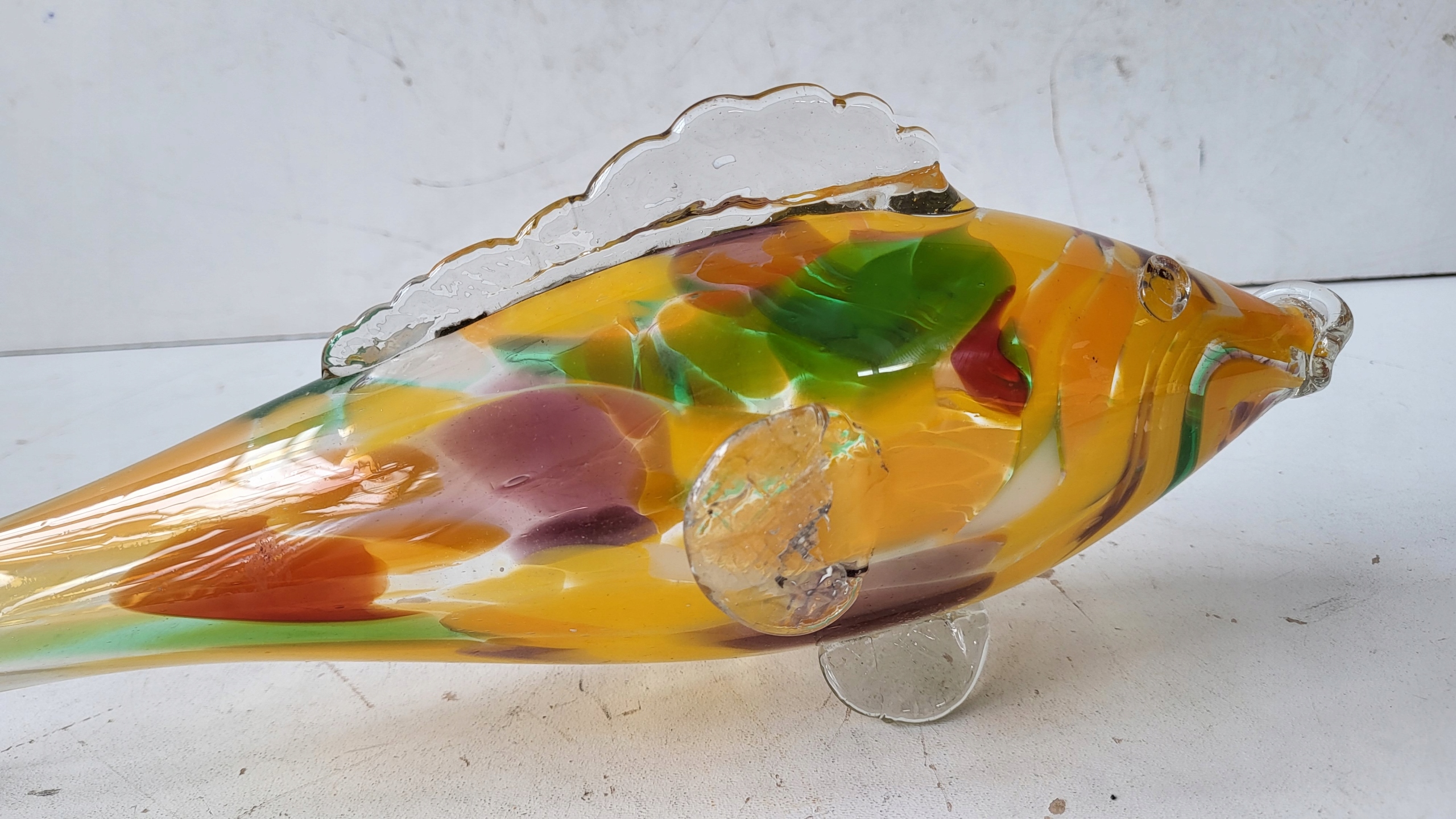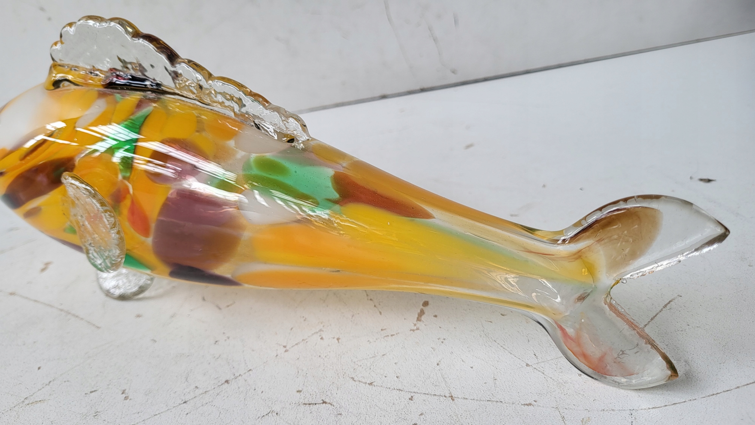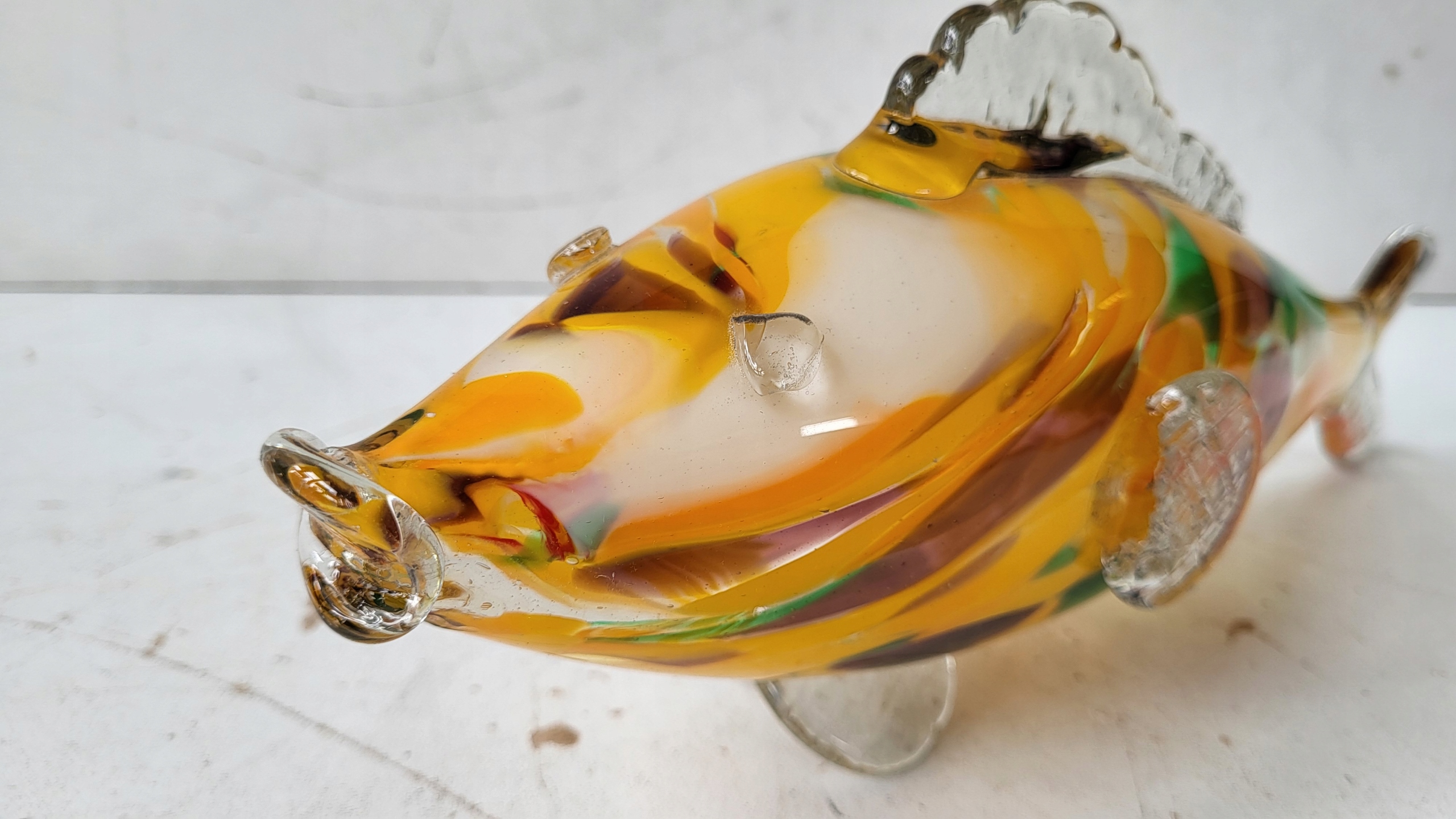 FIGURKA SZKLANA ŻÓŁTA RYBKA Z CZASÓW PRL STAN DOBRY