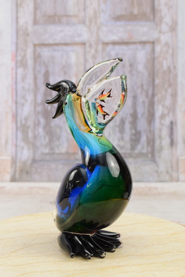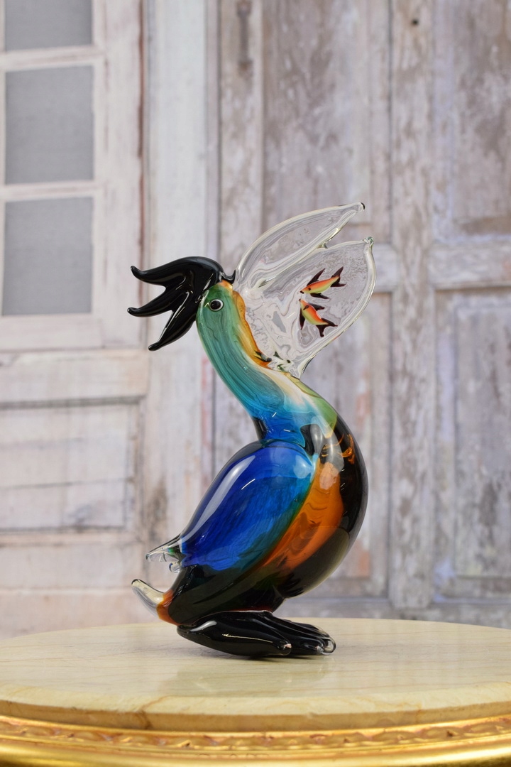 Фігурка з муранського скла - ПТАХ - ПЕЛІКАН з рибою в пащі