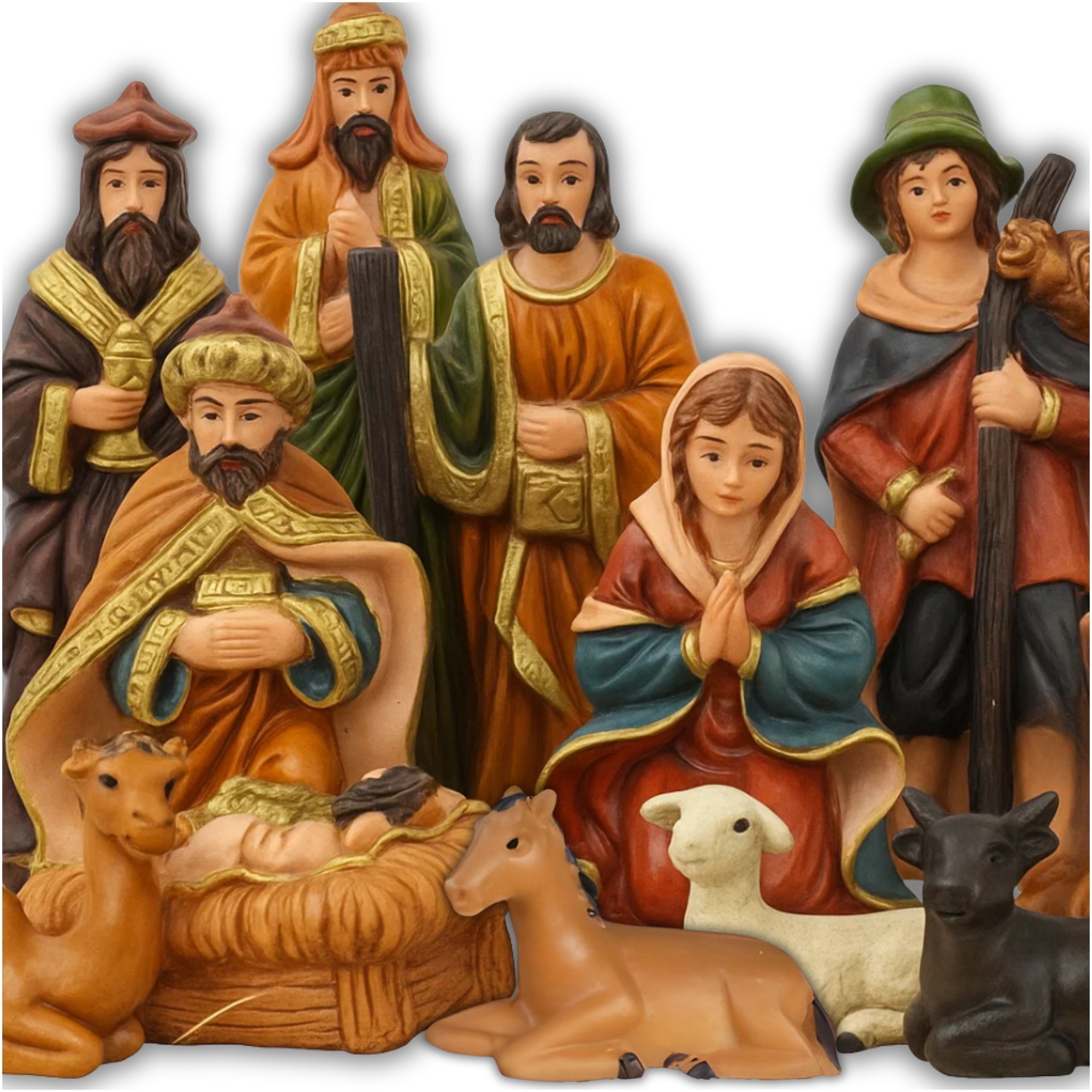 ✅ ПОЛНЫЙ НАБОР ИЗ 10 ЭЛЕМЕНТОВ – включает в себя всех самых важных персонажей для создания полноценного рождественского вертепа.