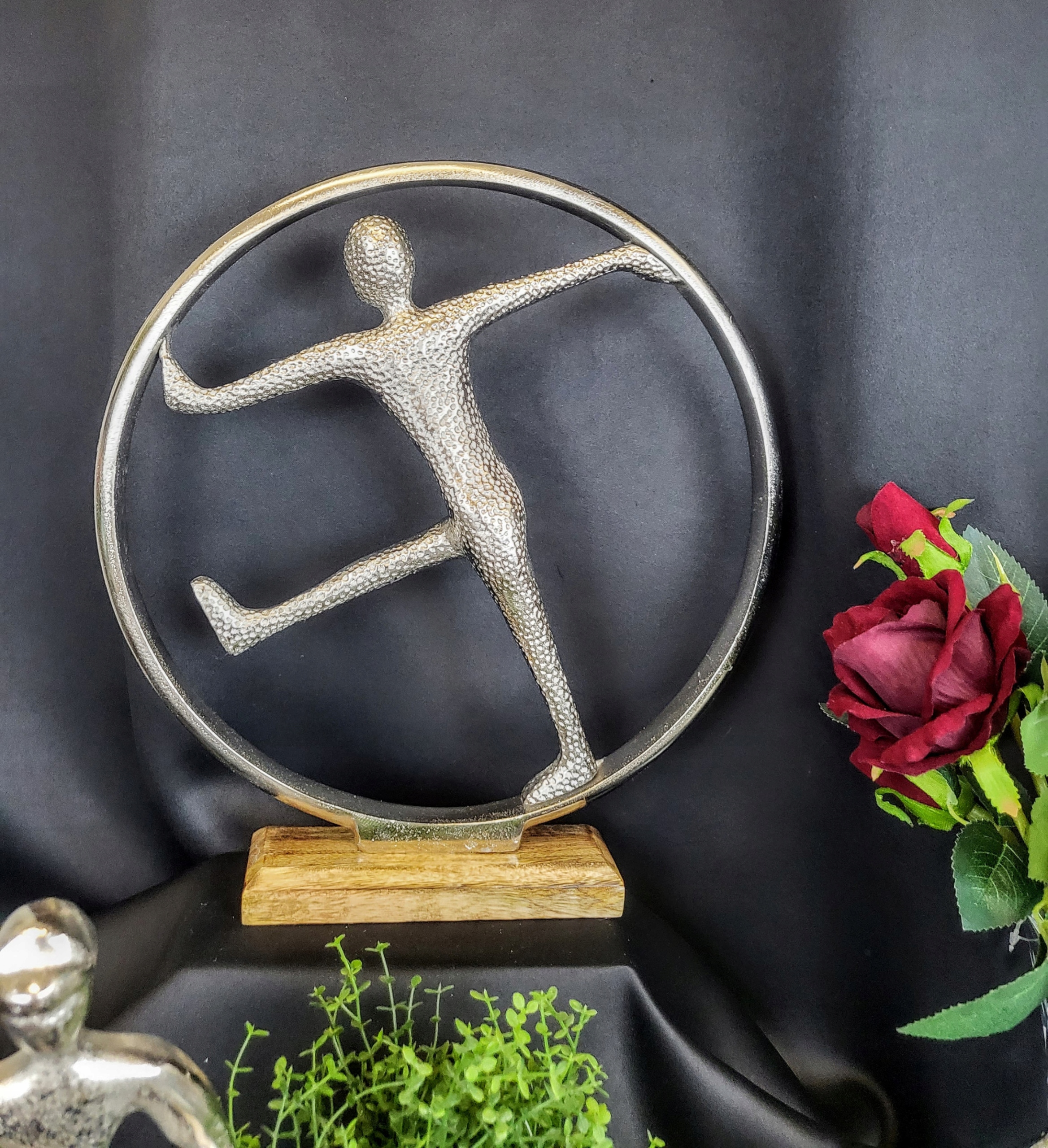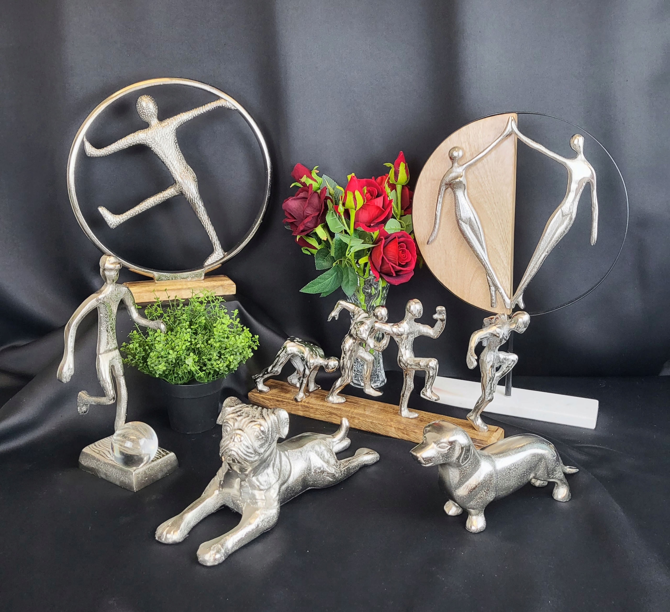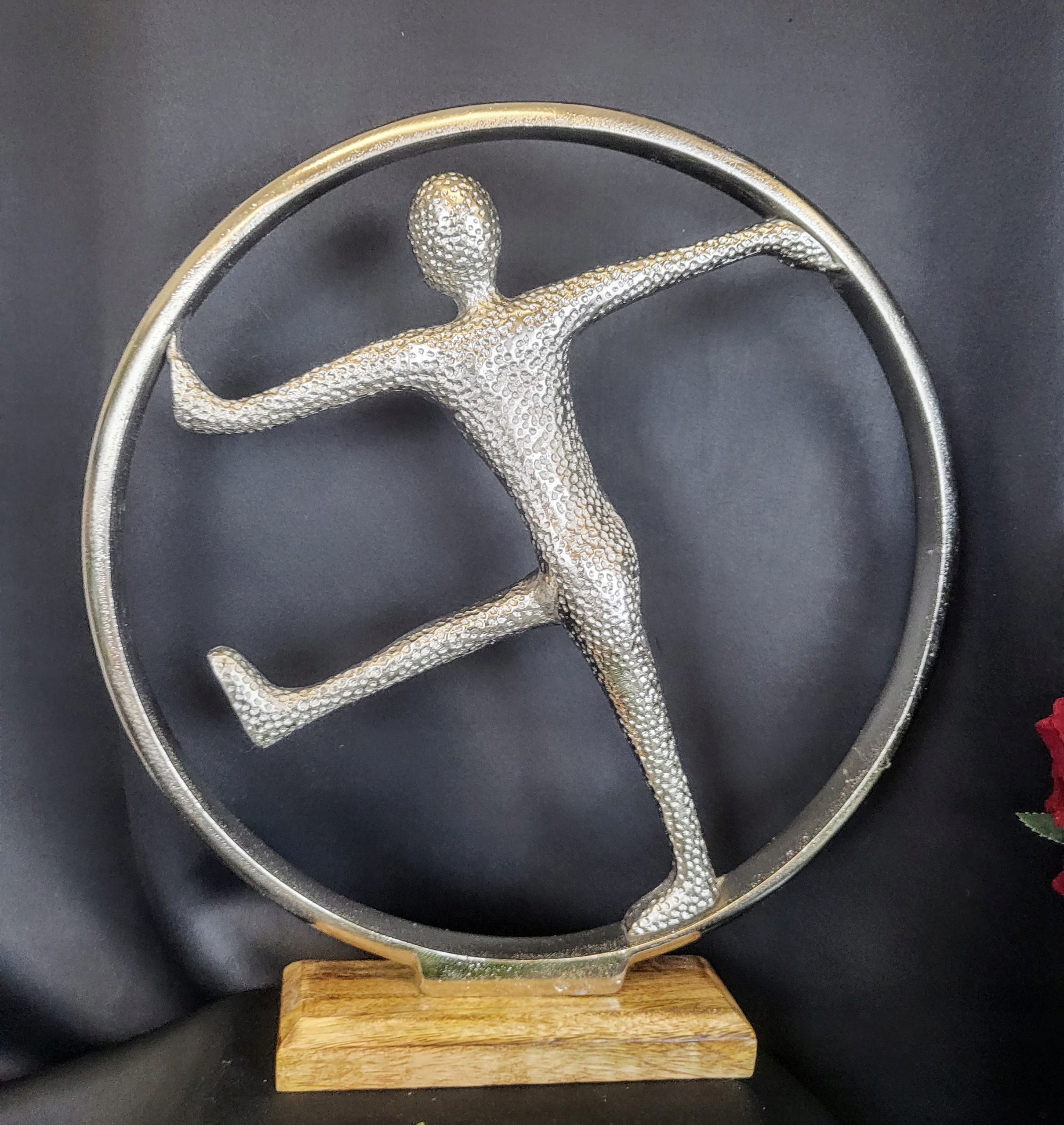 Оригинальная серебряная статуэтка на деревянной основе. Это работает как украшение классической и современной квартиры. Ее уникальный дизайн заставит никого пройти безразлично.