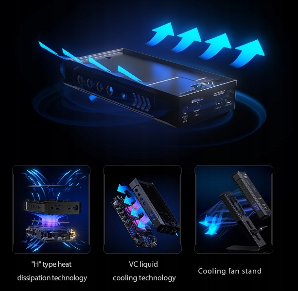 Исключительное качество звука сопровождается высоким энергопотреблением, поэтому при разработке M17 основное внимание уделялось эффективному рассеиванию тепла. Используются не только технологии теплоотвода H-типа и жидкостного охлаждения VC, но и цельный корпус из алюминиевого сплава массой 151 г, который эффективно отводит тепло от устройства. Наконец, подставка с вентилятором обеспечивает дополнительный и быстрый отвод тепла.
