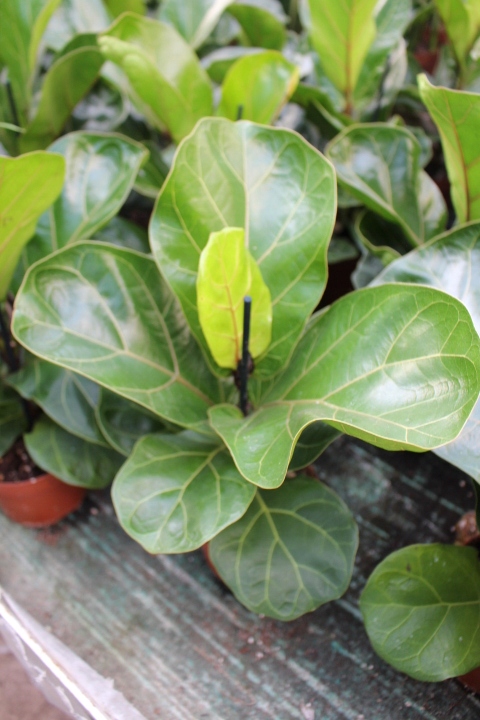 Ficus lyrata — красивая разновидность фикуса с величественными листьями. Его пышно-зеленые листья на ощупь и по форме напоминают листья всем известного дуба. Слегка жесткая листовая пластинка покрыта жилками, выпуклыми снизу и вогнутыми сверху.