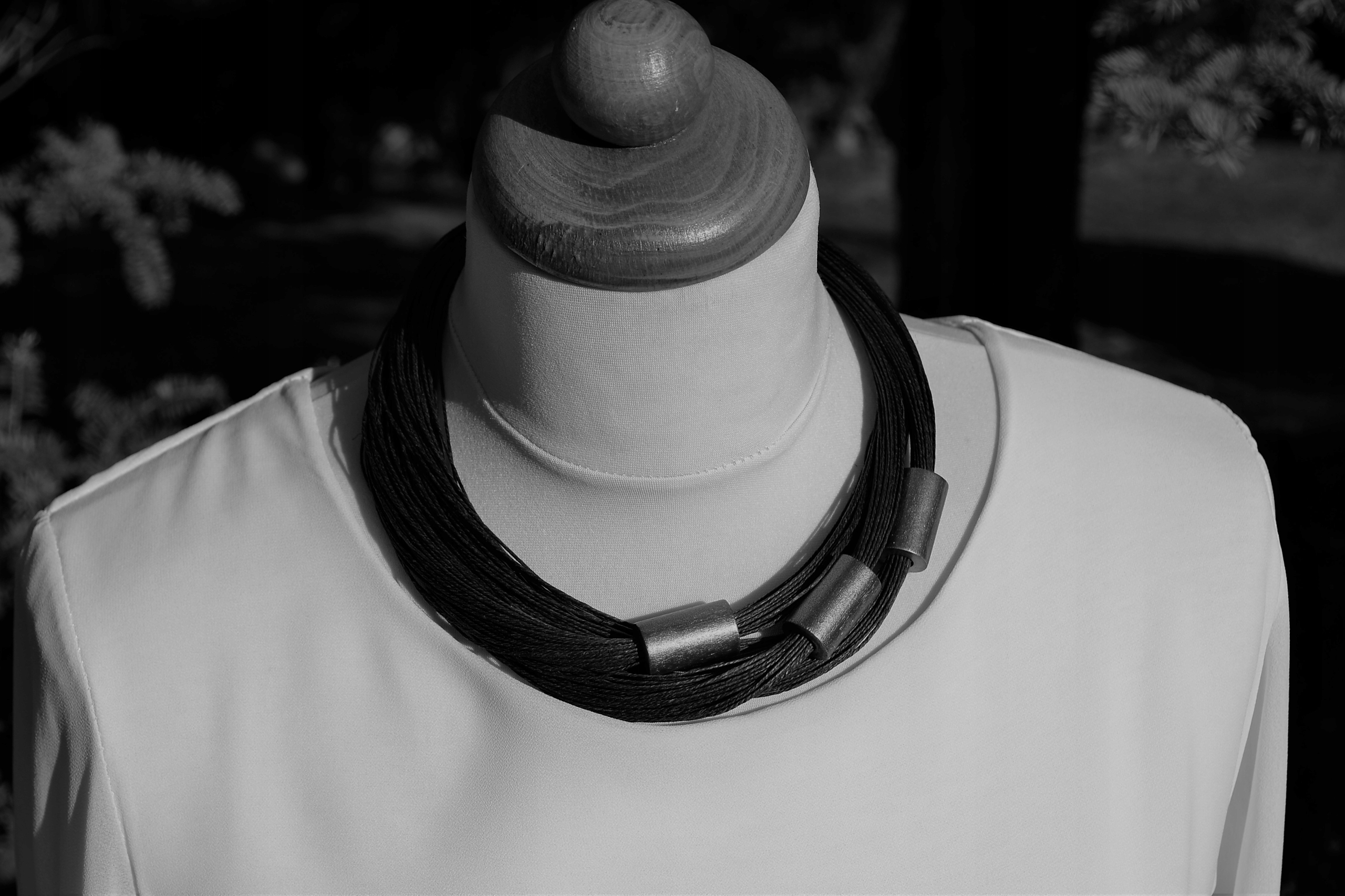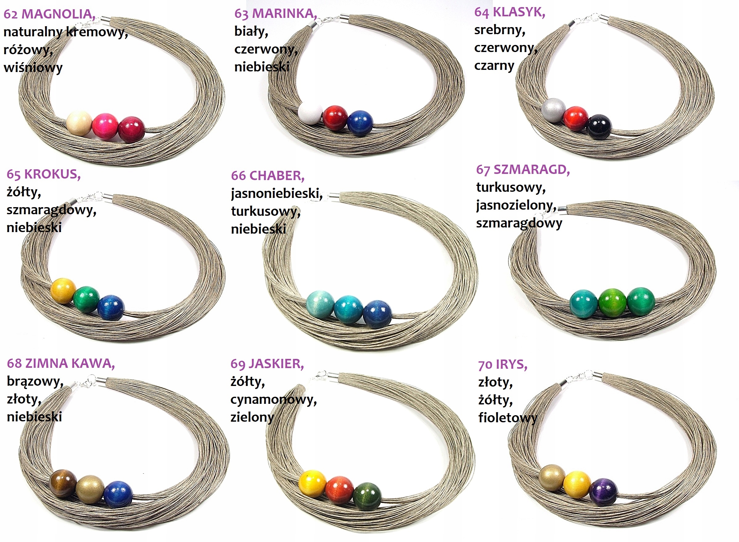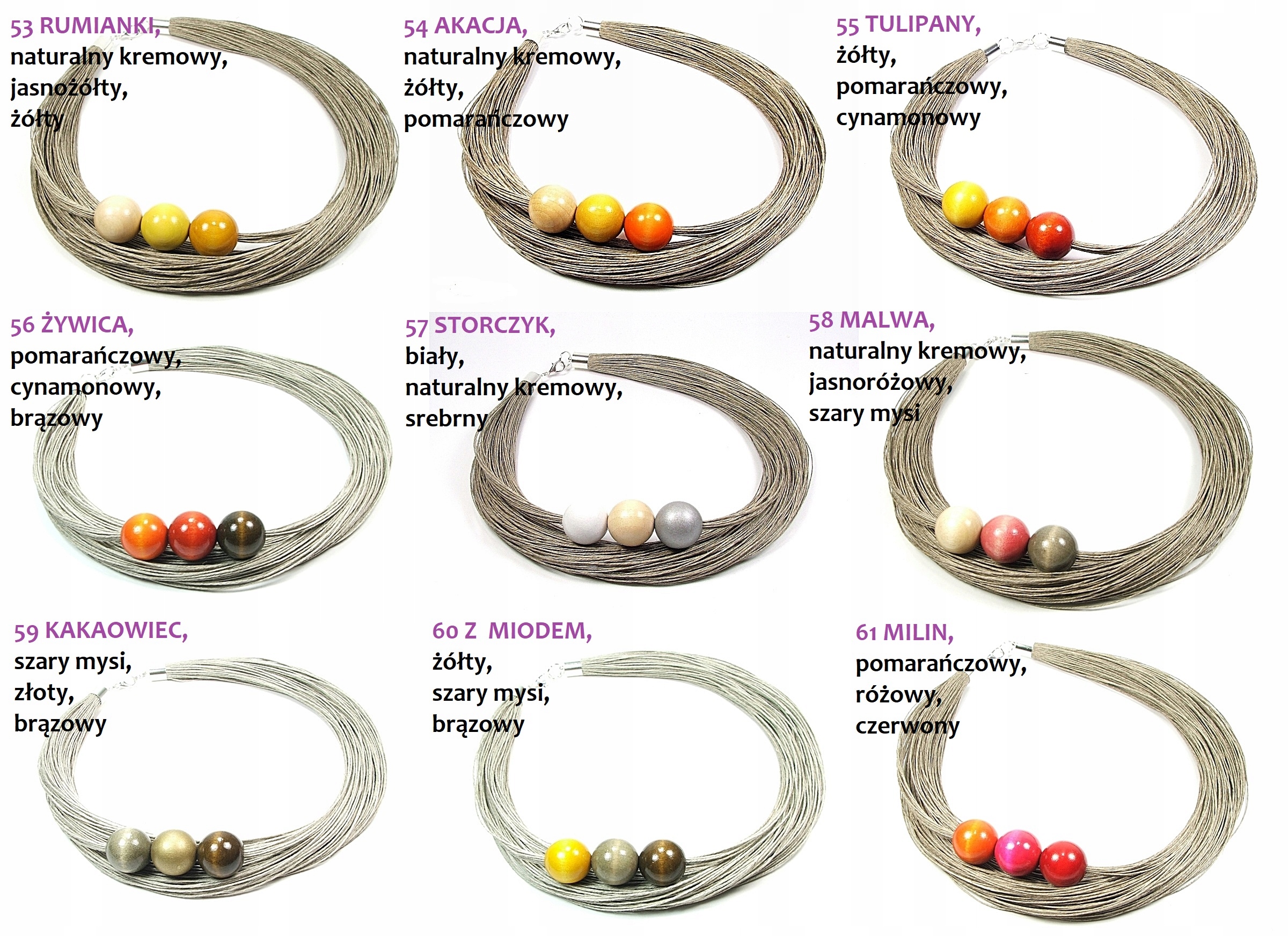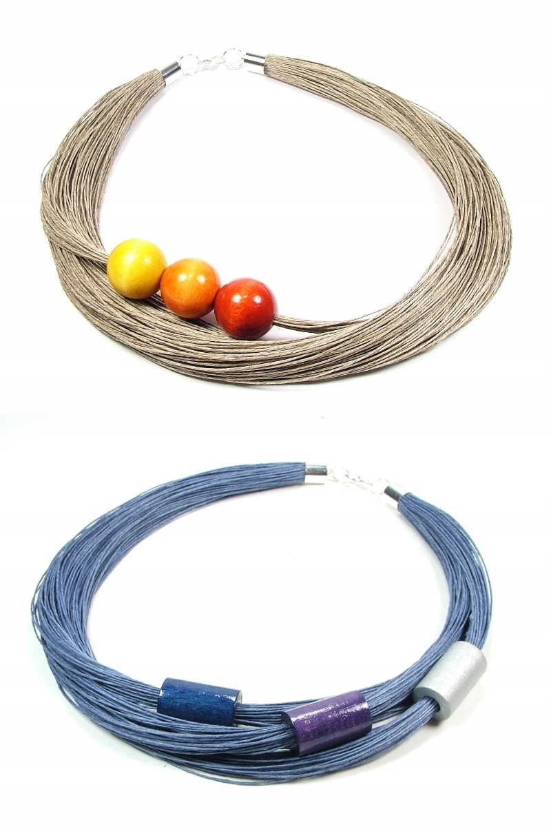Колье выполнены вручную на основе льняной пряжи. очень хорошо пропитанная, с вплетением в нее полированного, лакированного дерева бука.