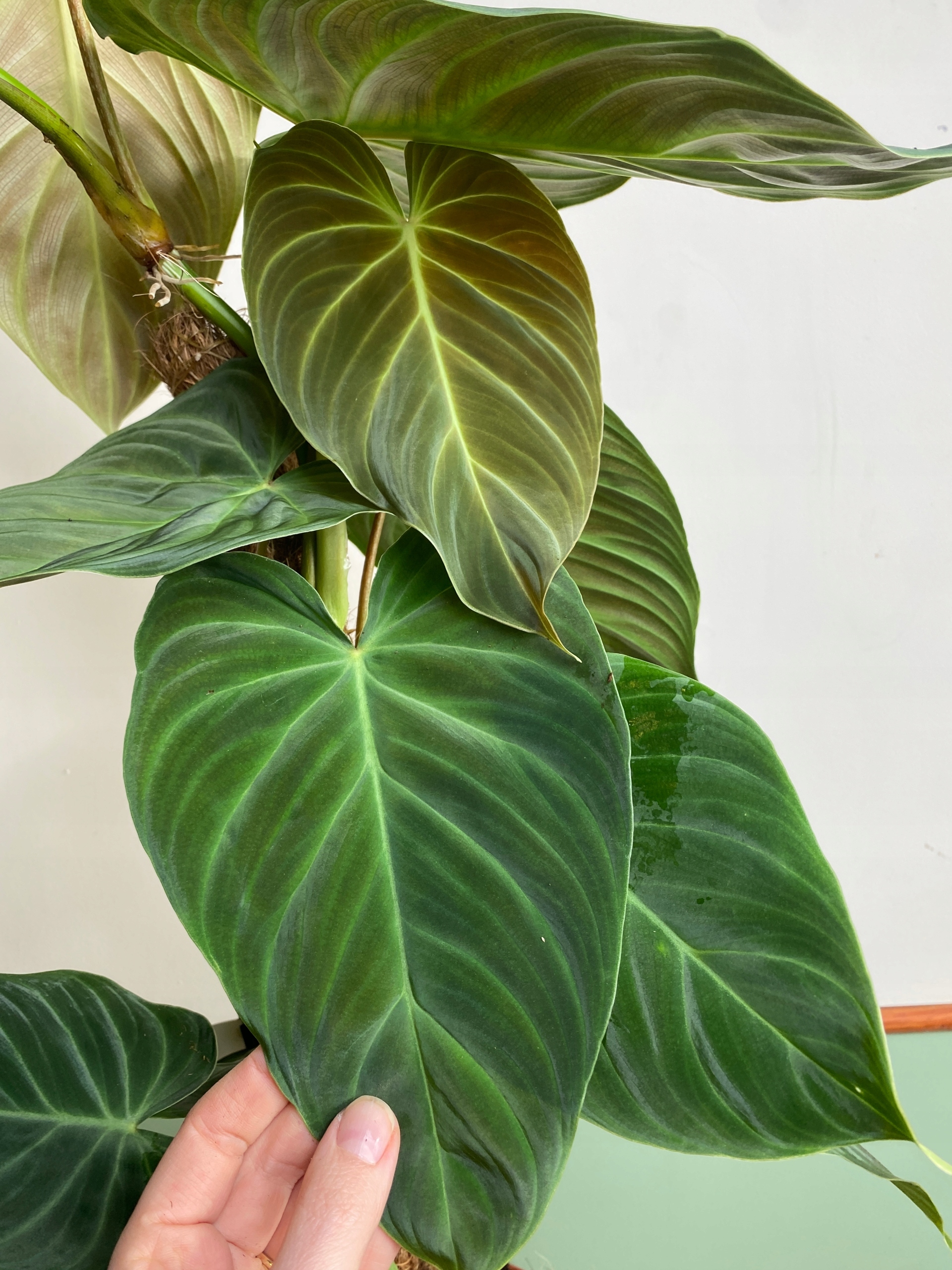 Филодендрон Великолепный немного похож на меланохристум, имеет очень похожую форму листьев и габитус. Их структура, как и у Melanochrystum, также нежная и кожистая. Их бархатистая поверхность красиво переливается в солнечных лучах.