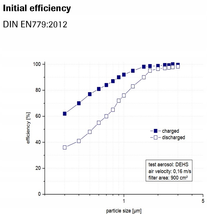 - КПД ISO 16890: ePM 1,мин 48 %, ePM 2,5, мин. 57 %, ePM1 61 %, ePM2,5 70 %