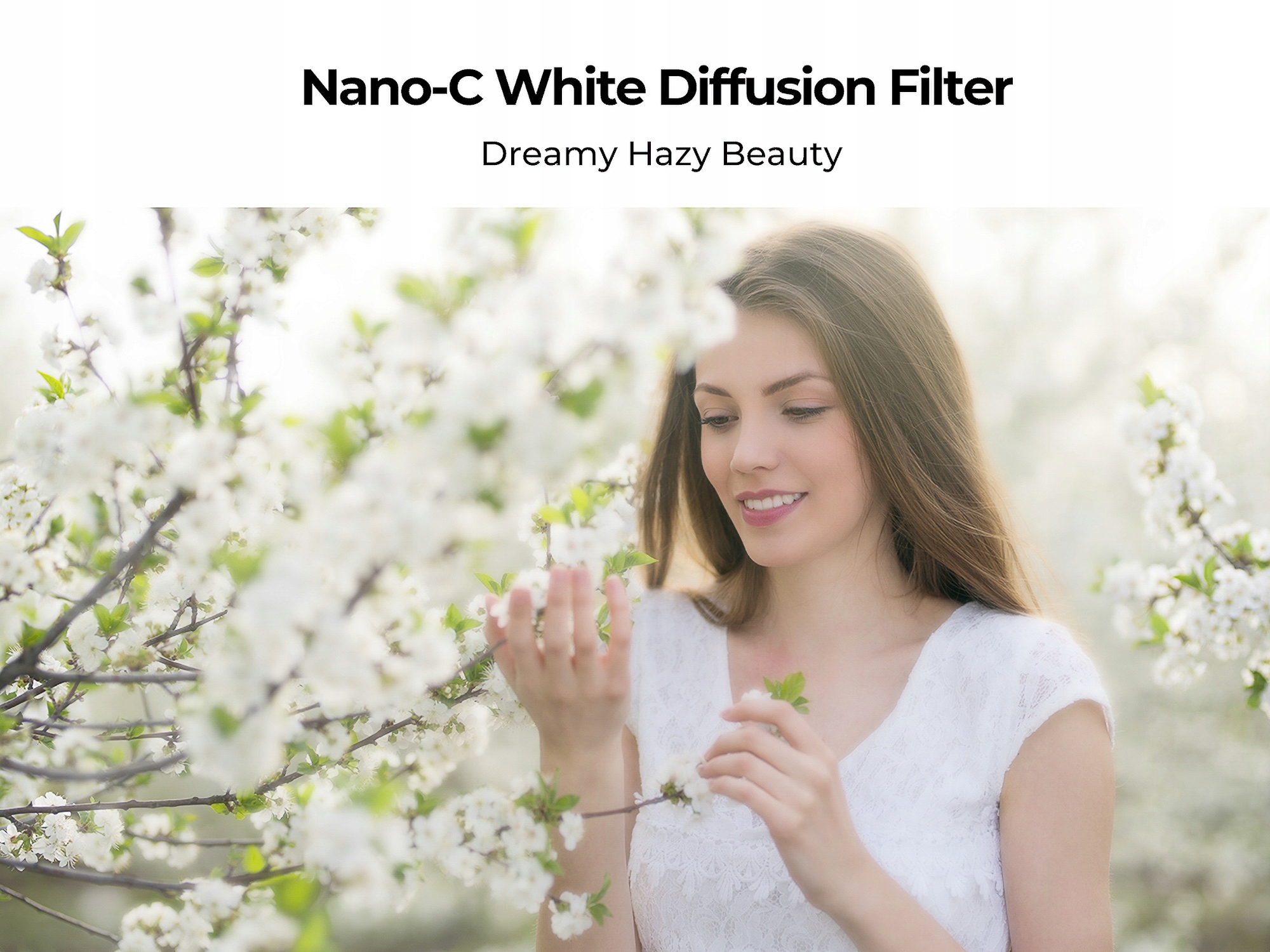 С концепцией K & F White Diffusion Filter, вы не только получите тонкую атмосферу размытия и оно. Это также позволяет вам аккуратно уменьшить видимость морщин, обесцвечивания и пор, придавая портретам чрезвычайно деликатный и естественный вид. С помощью этого фильтра кожа на изображениях становится более сияющей, и ее текстура кажется более сбалансированной и равномерной. Благодаря этому вы не только подчеркиваете красоту модели или модели, но и даете своим фотографам профессиональный и идеальный вид.