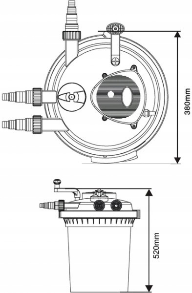 - В отличие от обычных фильтров, вода из напорного фильтра может вытекать и подниматься на высоту до 3 м над фильтром, напр. по каскаду, потоку (в зависимости от используемого типа). насосы)