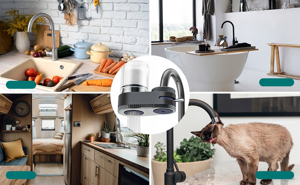 Универсальная адаптация: фильтр для смесителя для кухонной мойки оснащен адаптером с 22 внутренними зубьями, адаптером с 22 внешними зубьями, адаптером с 20 внутренними зубьями, адаптером с 24 внешними зубьями и многофункциональным разъемом для различных сценариев использования