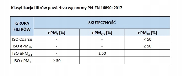 - PN-EN ISO 16890:2017 - ePM10 50%