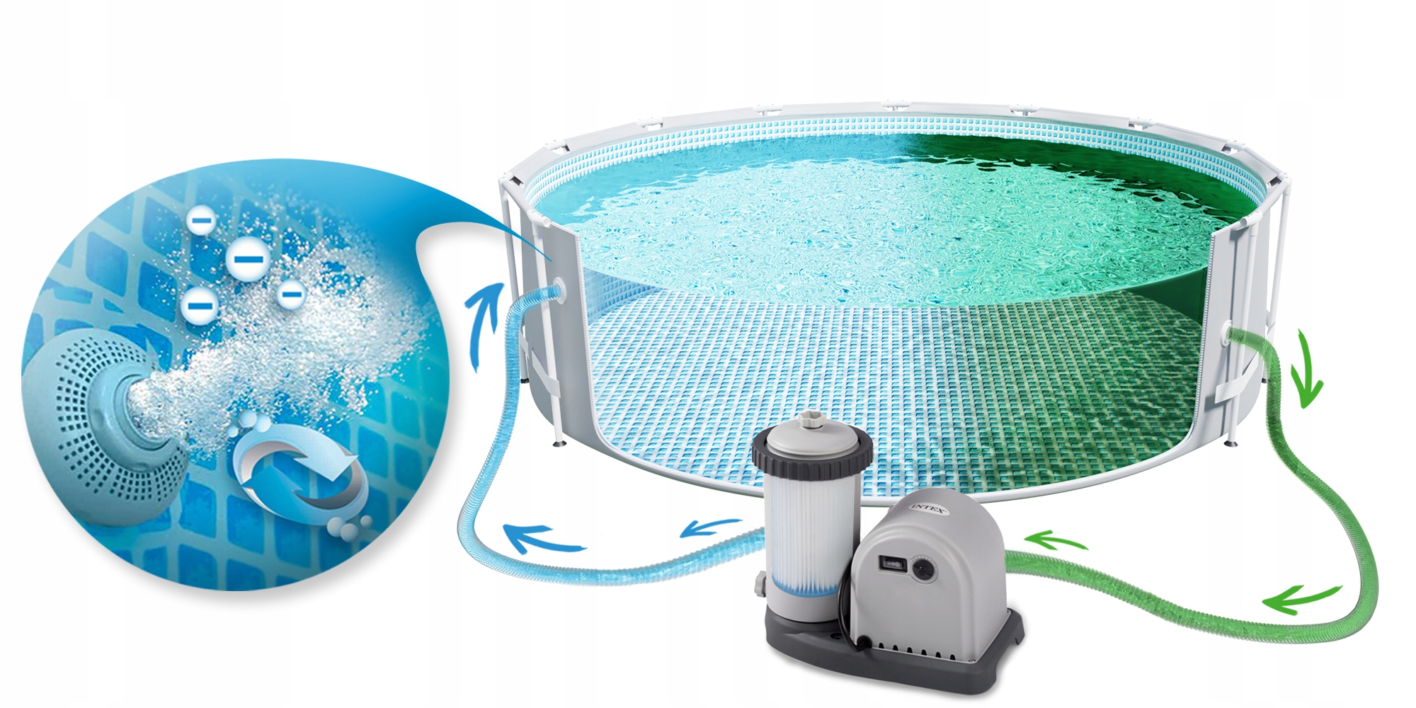 Intex представляет революцию в садовых бассейнах — аэрацию воды с одновременной ее фильтрацией, доступную во всех насосах этого производителя.