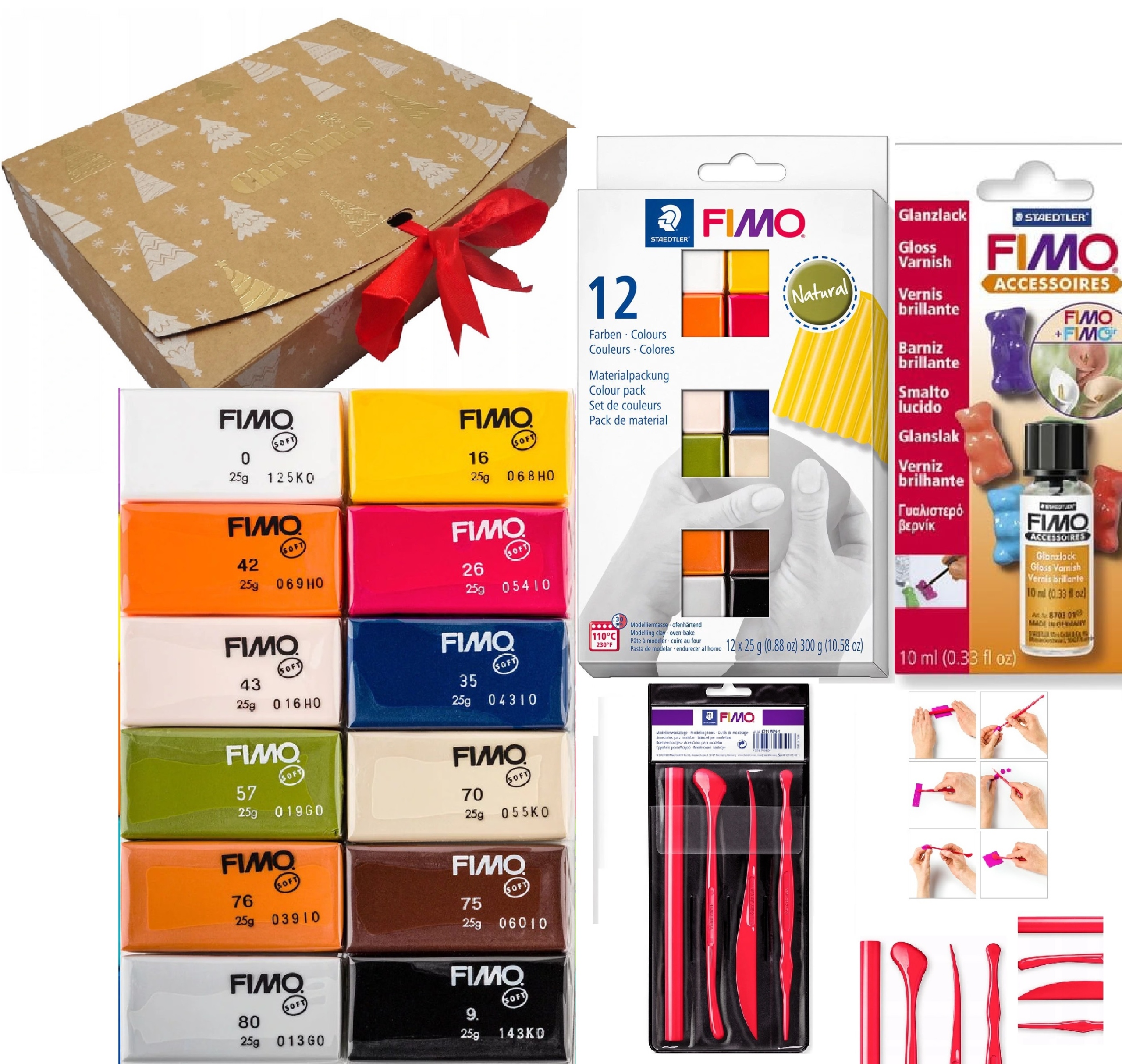 FIMO SOFT PLASTIC МАСА 12 КОЛЬОРІВ НАБІР АКСЕССУАРІВ