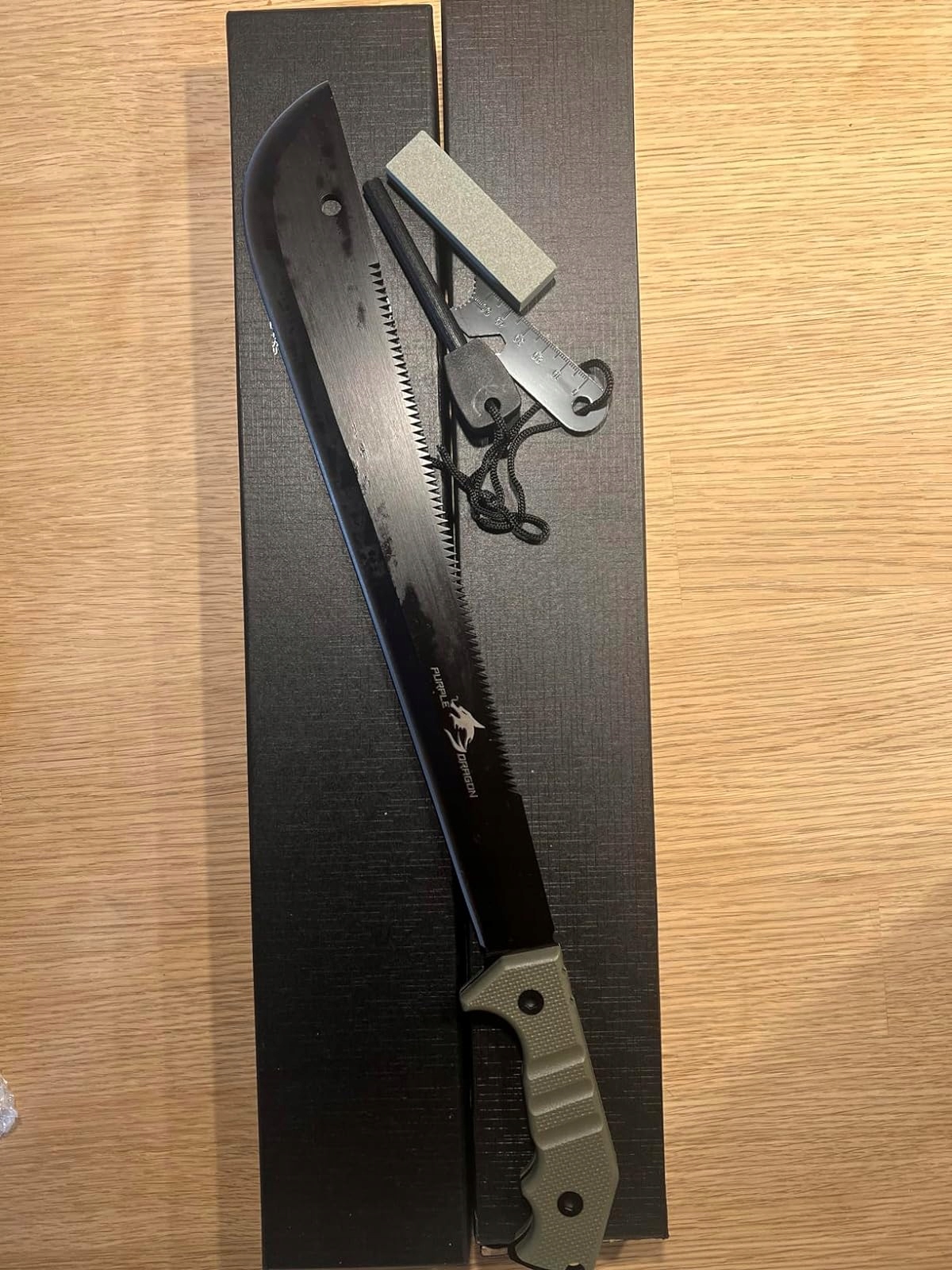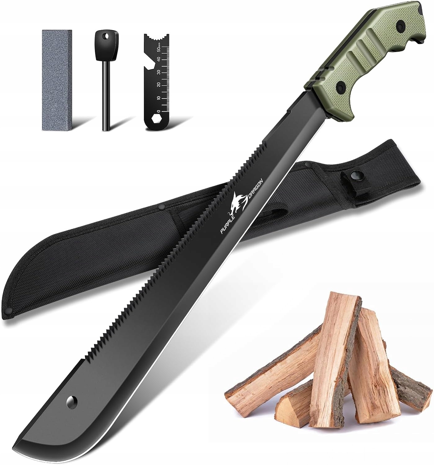 Purple Dragon Machete с пилой и влагалищем для сада - большой наружный нож для леса - полный нож охоты на танг, изготовленный из одного куска стали D2 h2>